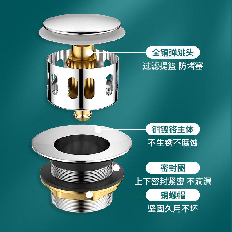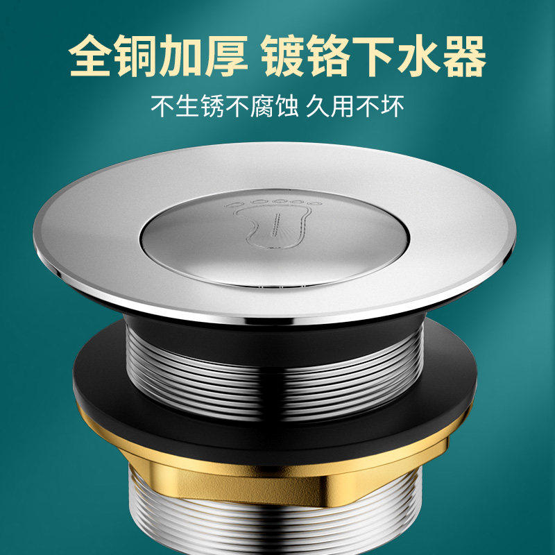 全铜浴缸下水器全套弹跳芯浴盆木桶下水塞淋浴房泡澡桶下水管配件