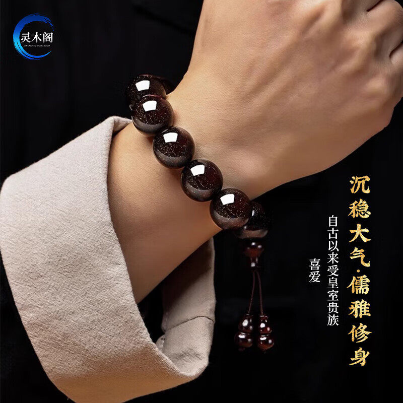 印度小叶紫檀手串男士高密度佛珠文玩老料檀香紫檀木手链女琥珀