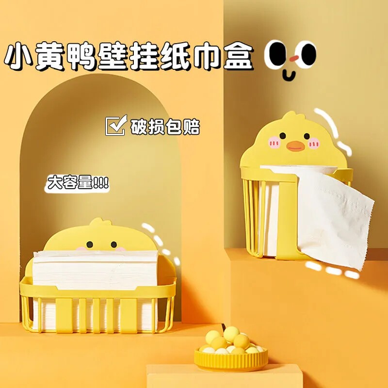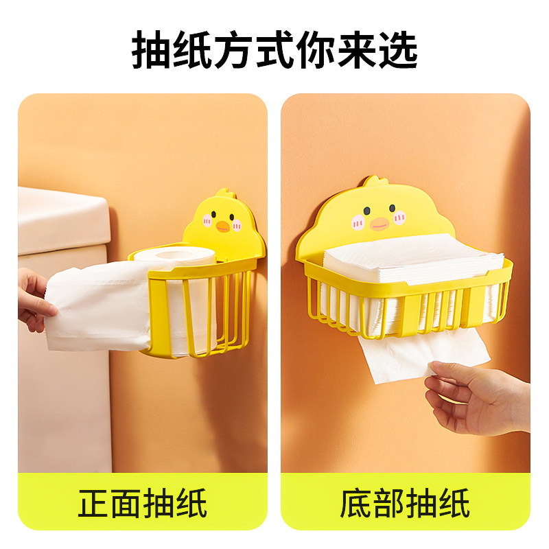 厕所纸巾盒免打孔壁挂式抽纸盒卫生间卡通卷纸架放卫生纸的置物架