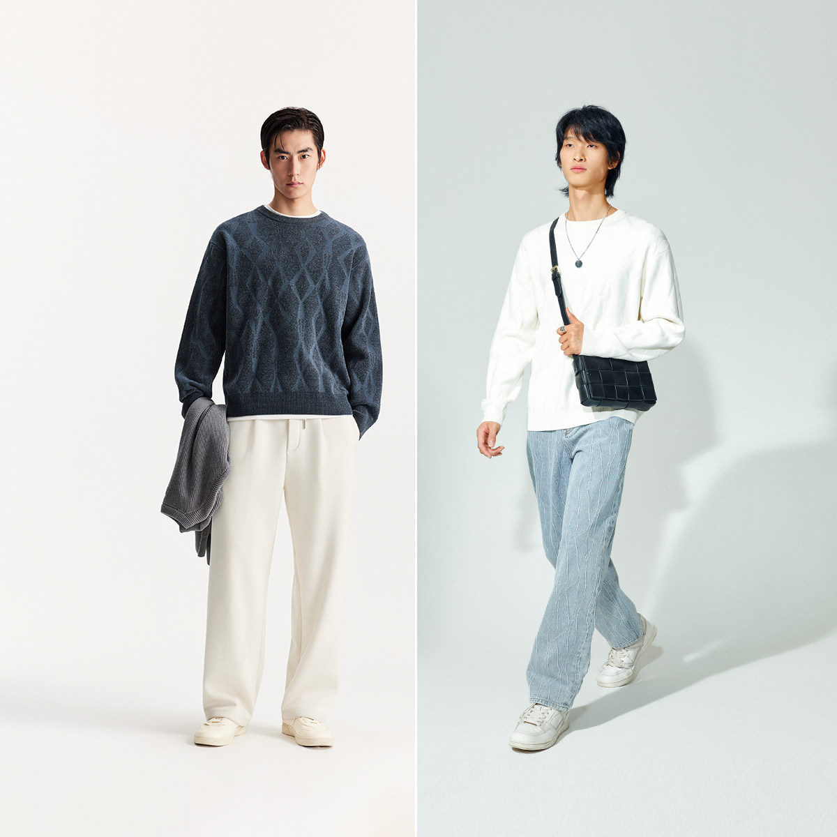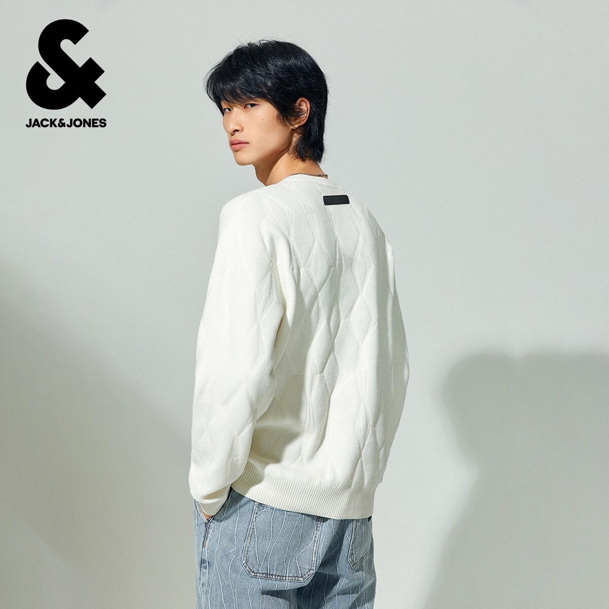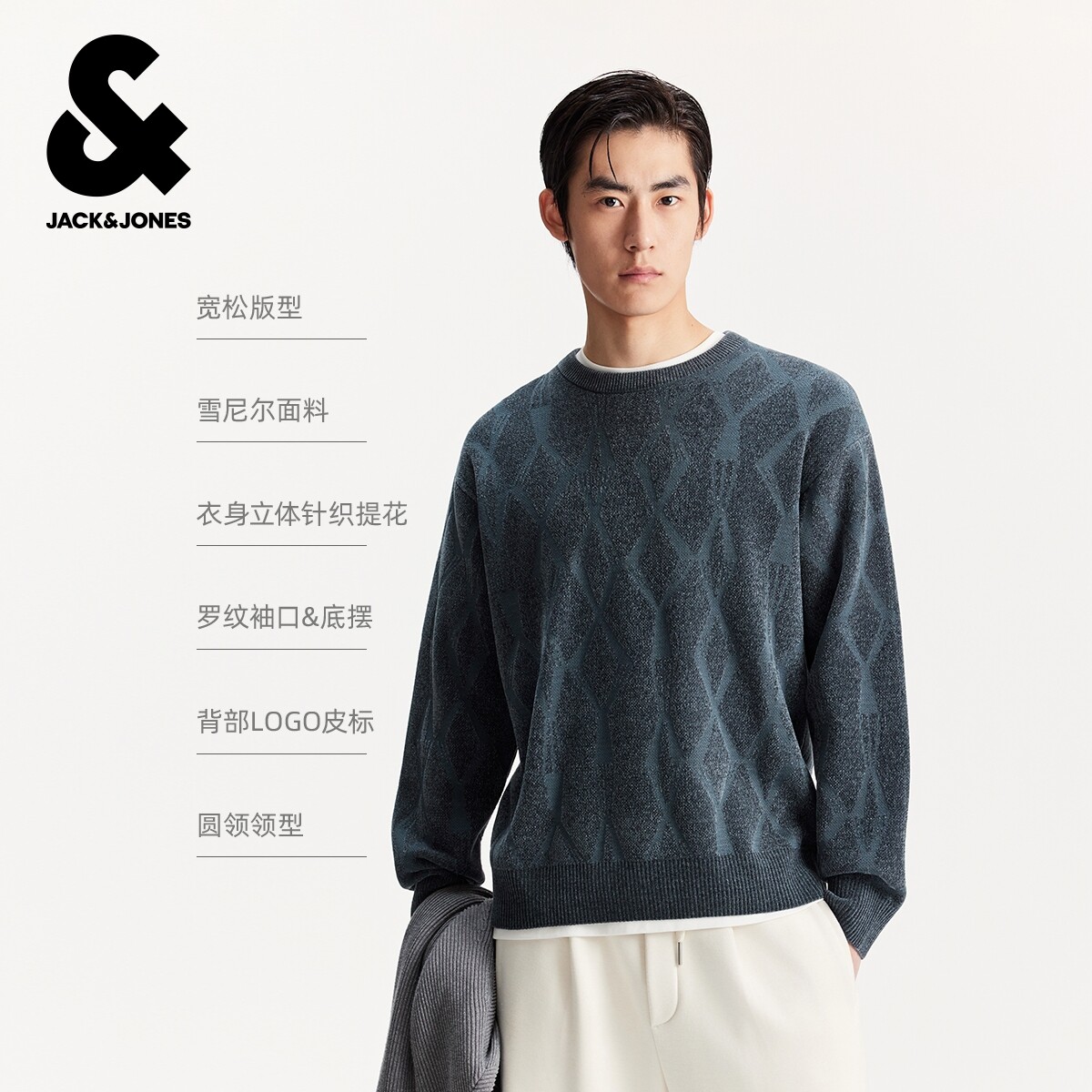 杰克琼斯男装春秋毛衣针织衫合身圆领纯色暗纹时尚日常百搭款上衣