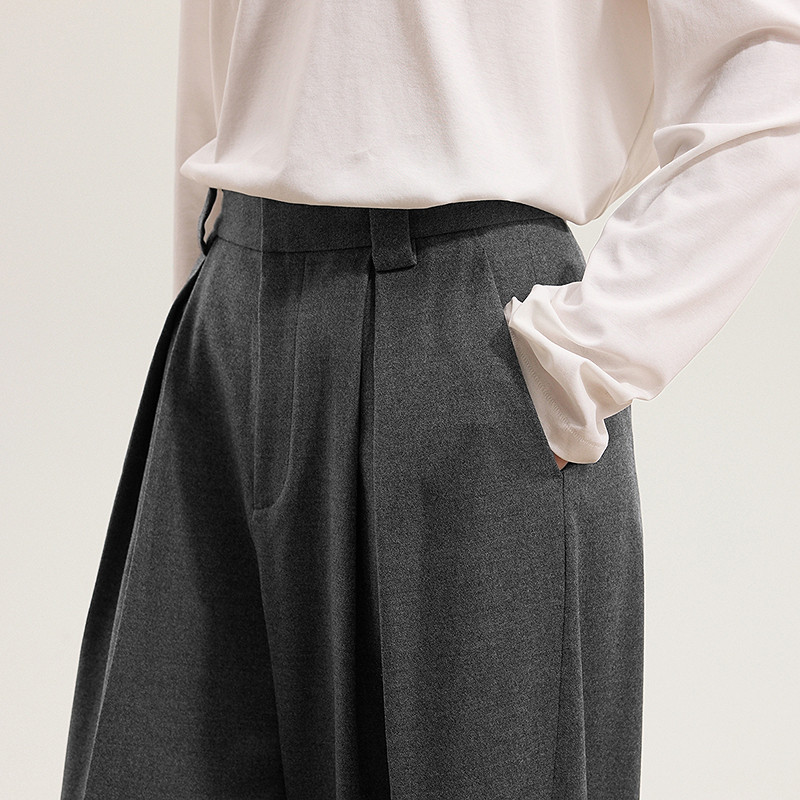 双侧带口袋棉绸绵绸人造棉高腰显瘦直筒裤女宽松休闲百搭阔腿长裤