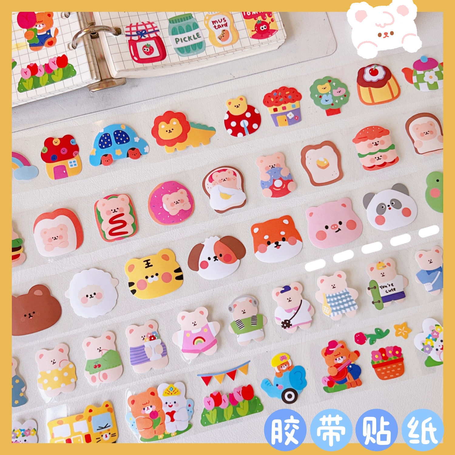 薄利多销透明小熊胶带装饰手账索引贴学生创意风贴画贴纸潮