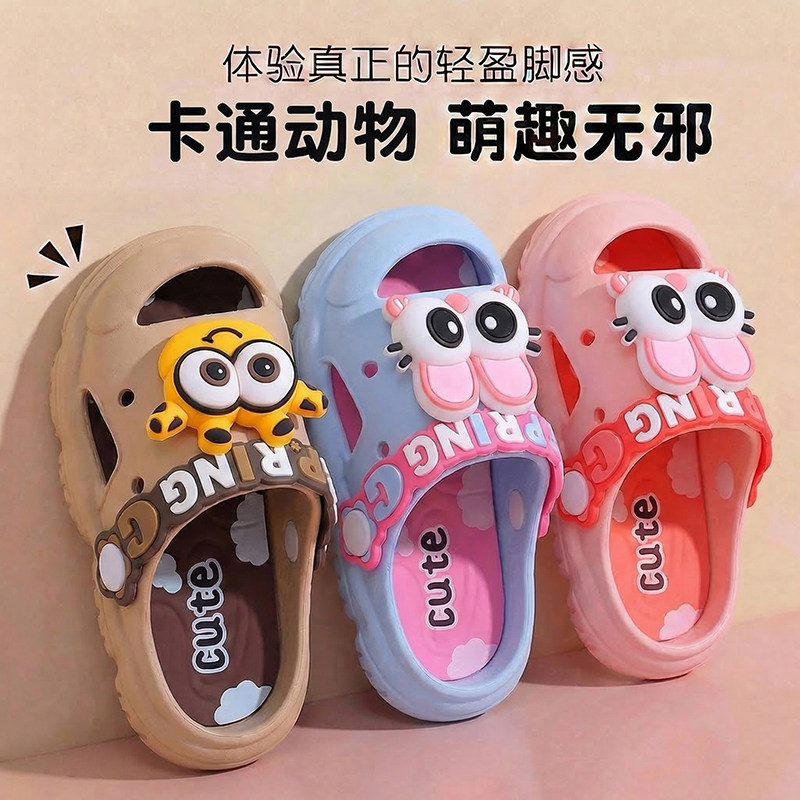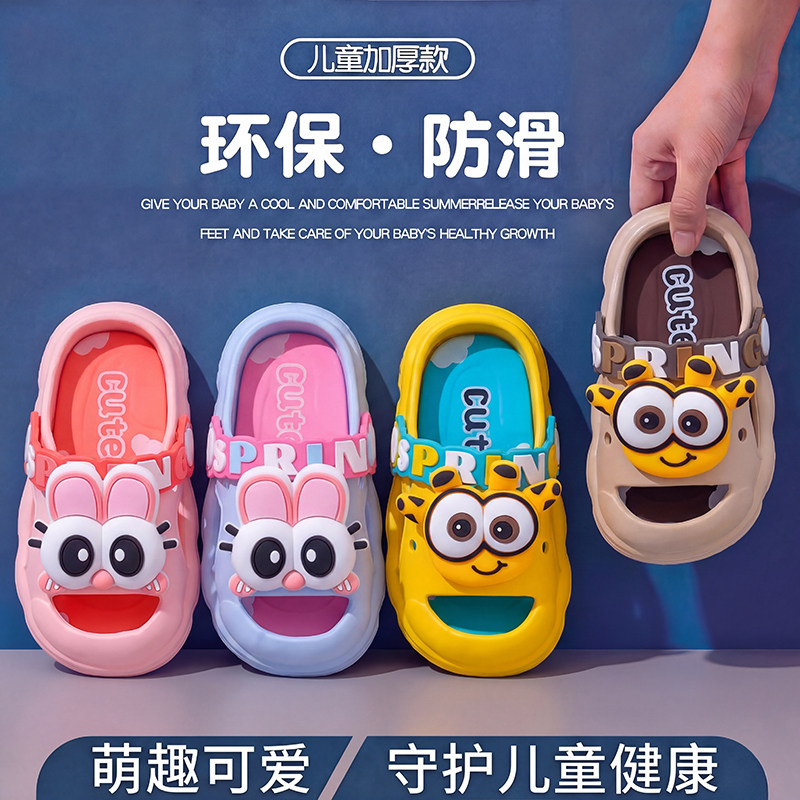 女童包头洞洞鞋儿童夏季宝宝室内软底婴幼儿防滑拖鞋卡通男童凉鞋