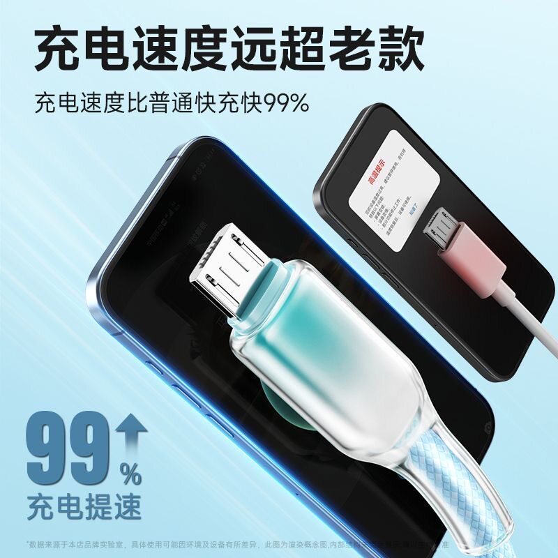 安卓数据线microUSB双引擎快充编织发光适用华为荣耀OPPOvivo小米手机小风扇台灯蓝牙音响车载快充