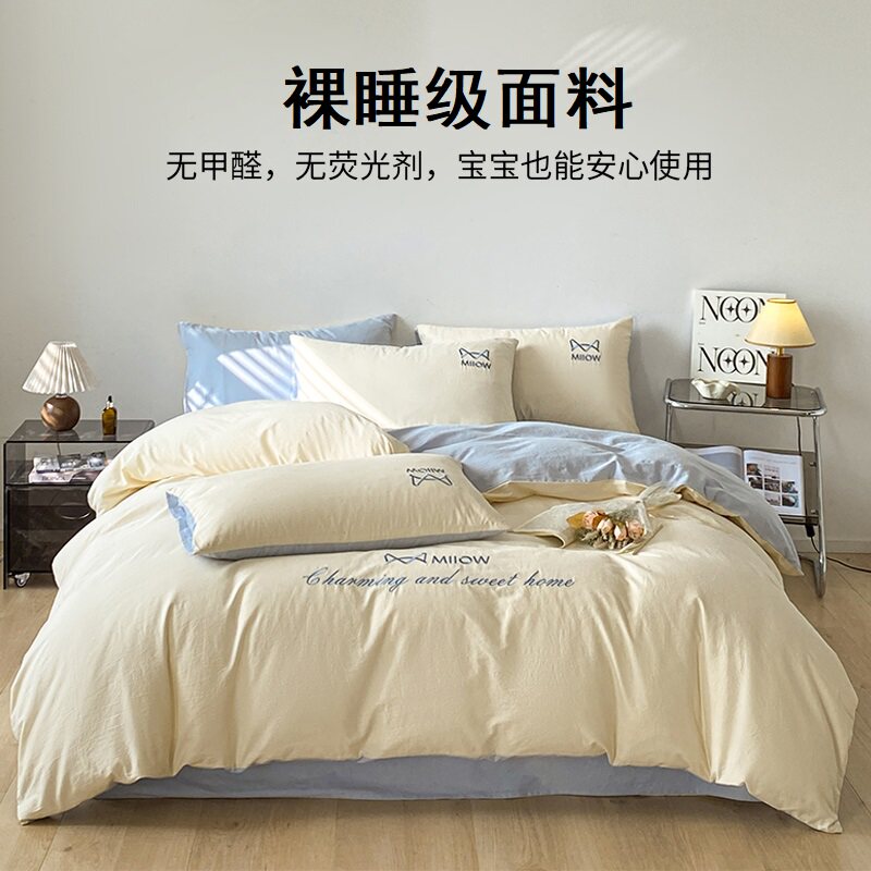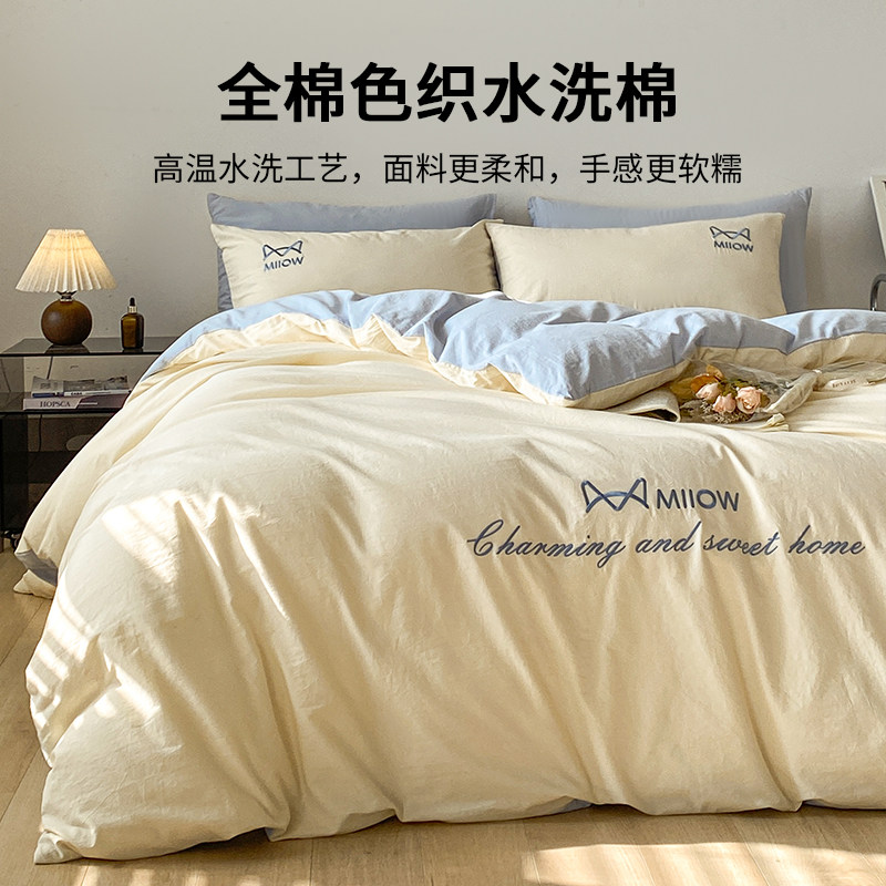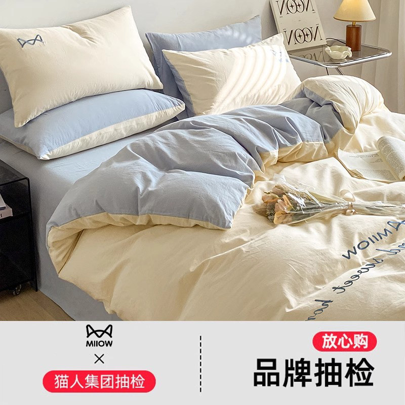 A类水洗棉双层纱四件套被罩非全棉纯棉床单人学生宿舍被套三件套