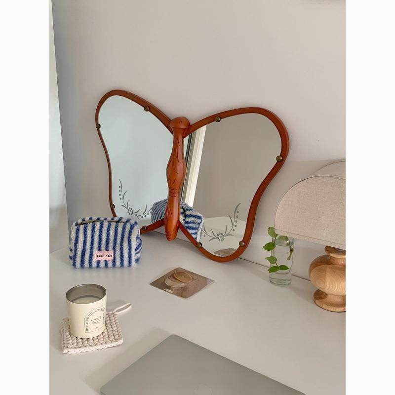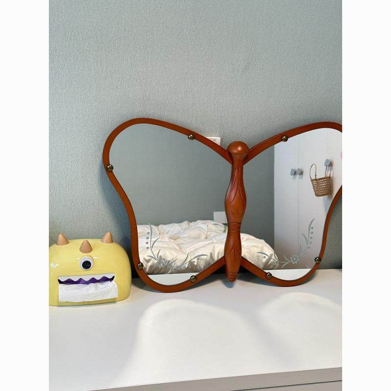 中古蝴蝶镜化妆镜实木镜法式复古梳妆镜设计师灵感打造化妆间卧室