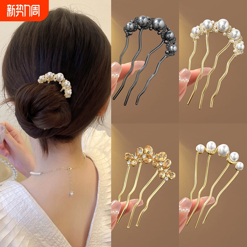 u型珍珠发簪高级感盘发神器发钗簪子四齿插梳新中式旗袍发卡头饰