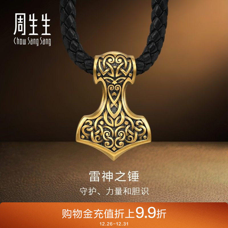 周生生古法黄金NOIR酷黑系列足金雷神之锤项链吊坠送男友90637Z
