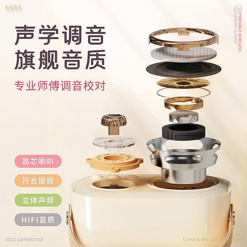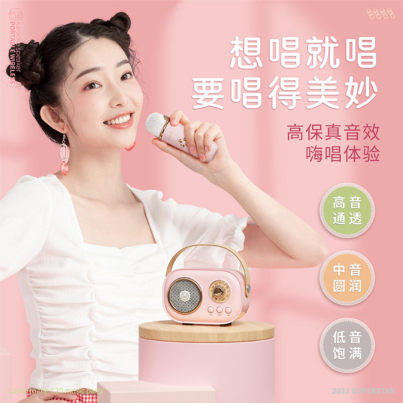 便携式K歌无线蓝牙音响C20plus一体机家庭麦克风户外ktv唱歌音箱