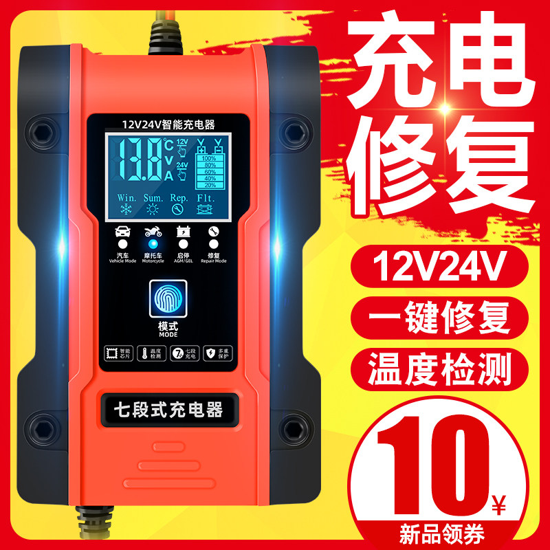 汽车电瓶充电器12v24v大功率摩托车蓄电池充电机纯铜自动智能修复