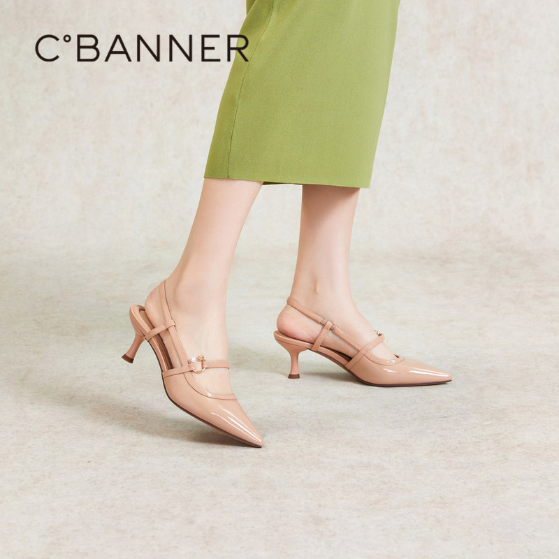 Cihi设计长期主义尖头细跟设计师单品亮面浅口包头后空高跟凉鞋