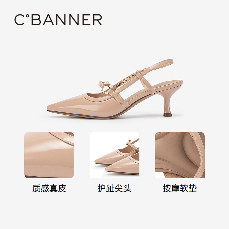 千百度细高跟时装凉鞋女夏季新款羊皮包头后空法式凉鞋通勤
