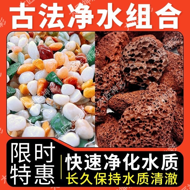 天然不浑水雨花石火山石鱼缸底砂净水造景套餐大匠神彩水培铺面石