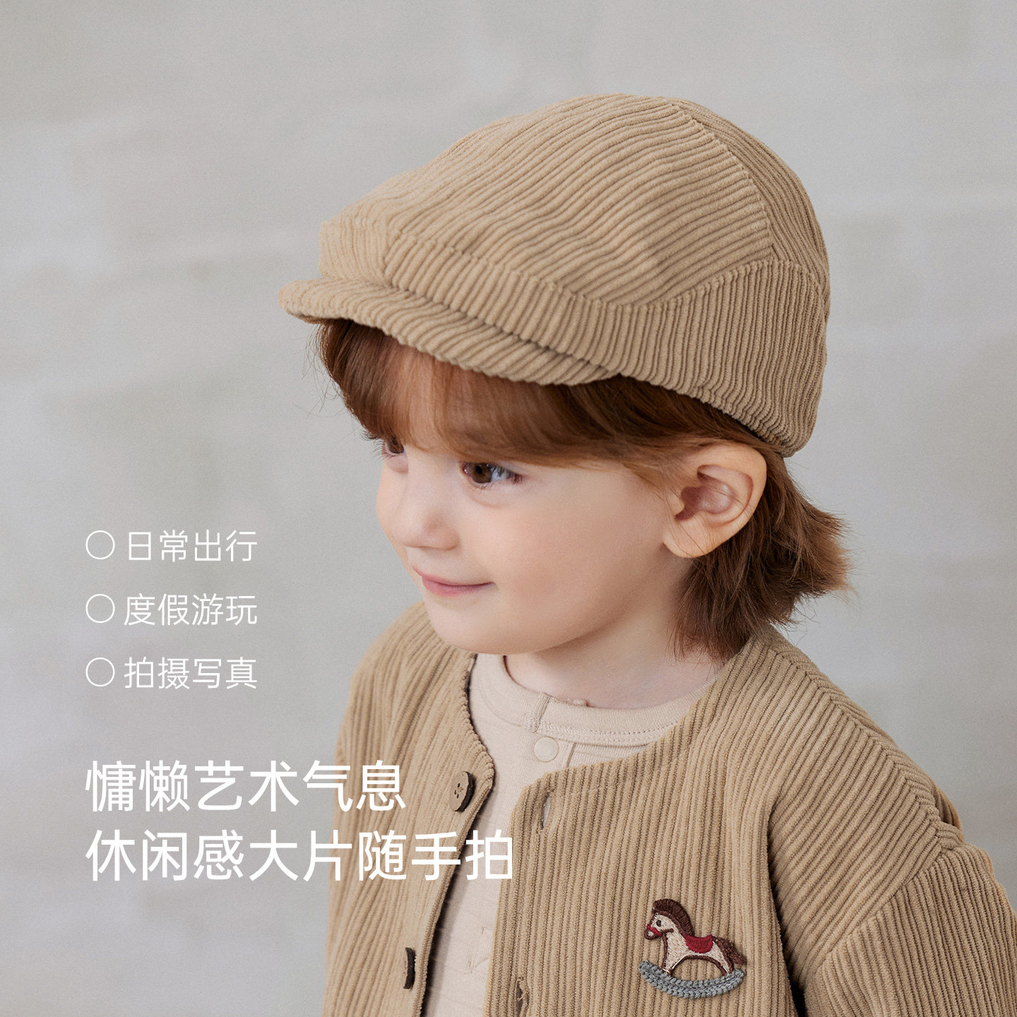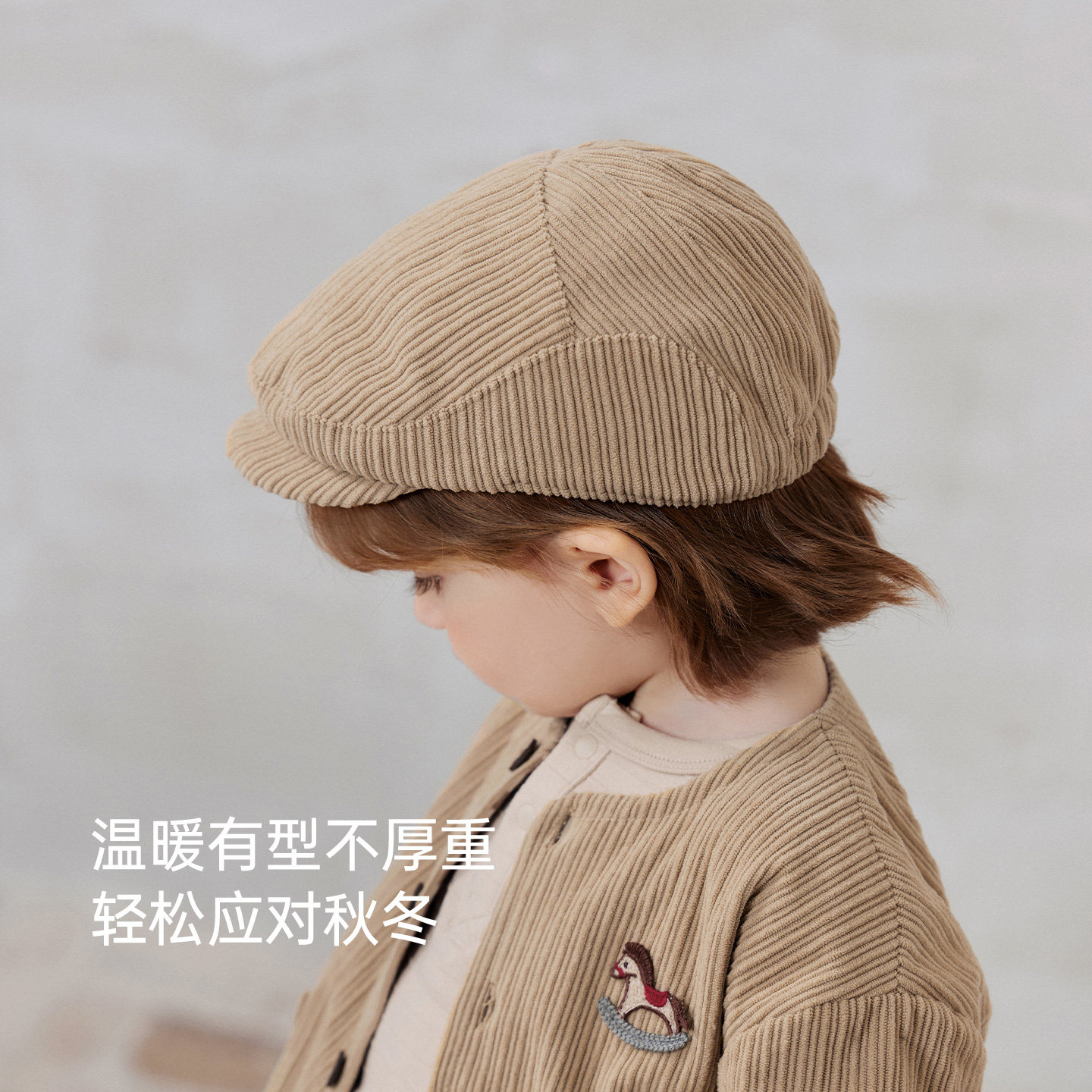 babylove婴幼儿帽子秋冬宝宝贝雷帽复古前进帽纯色百搭洋气画家帽