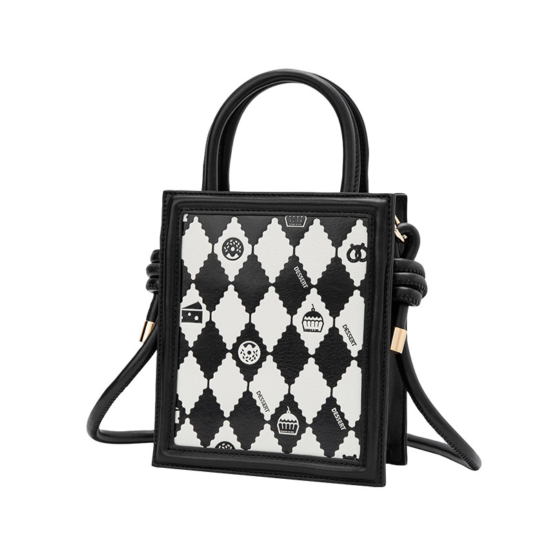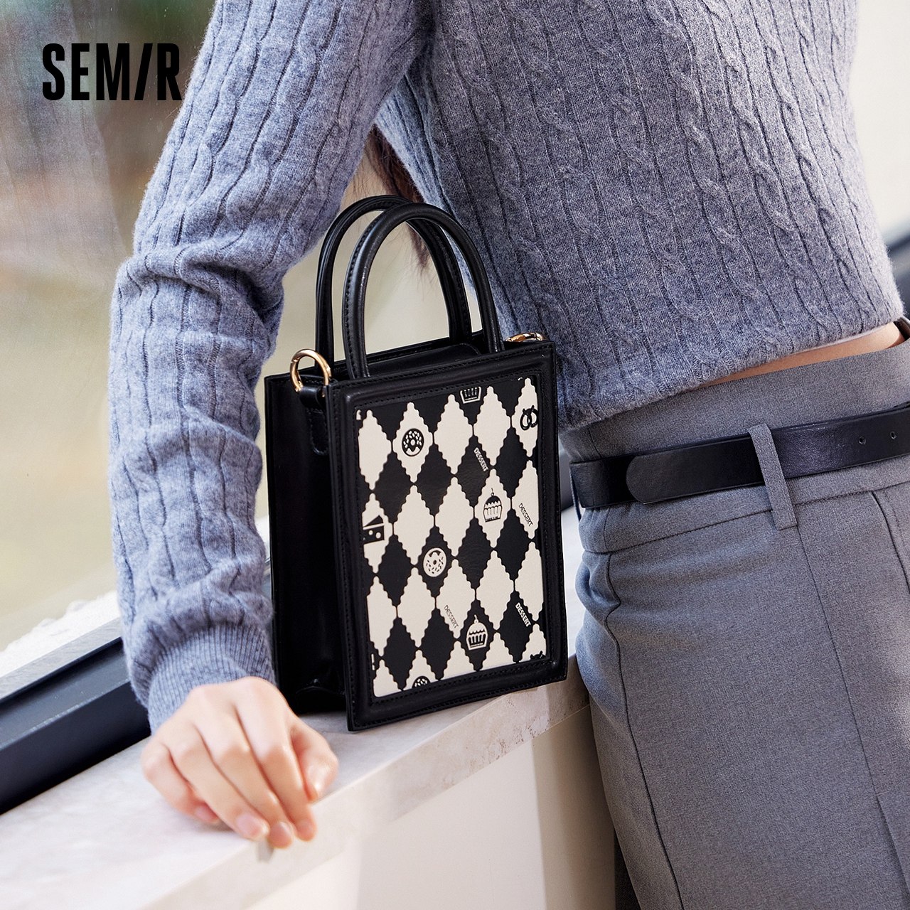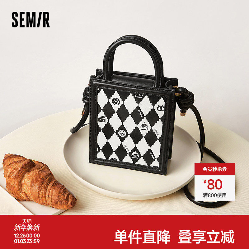 森马包包斜挎包女2024新款撞色菱格单肩包小巧手提包时尚小方包