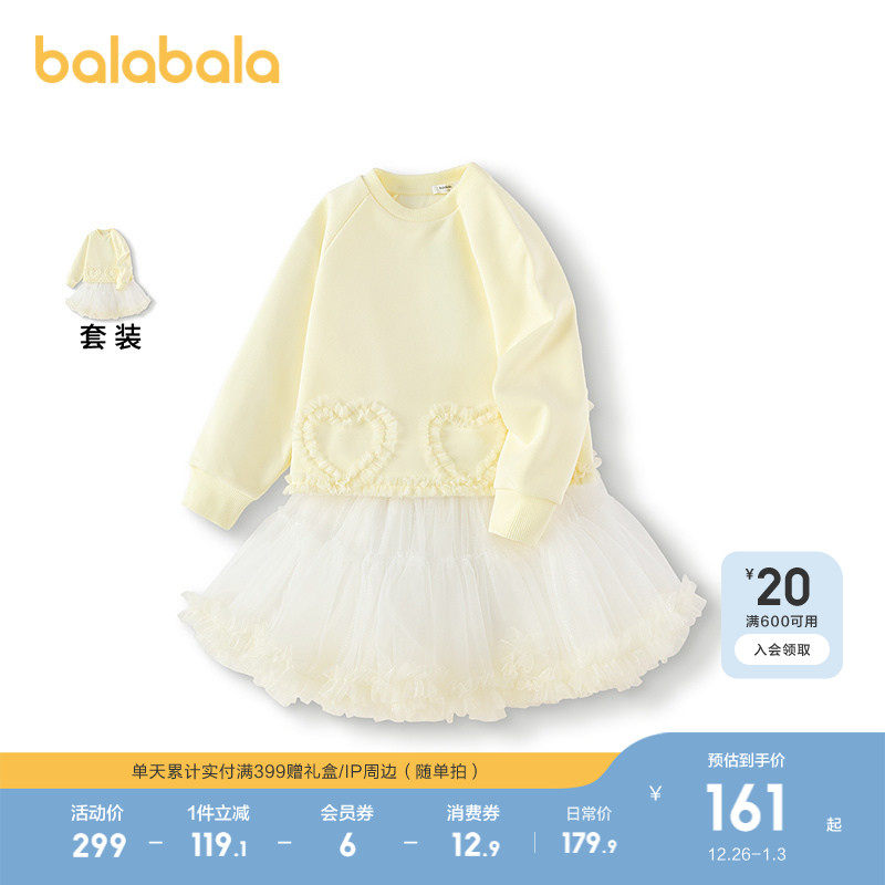 巴拉巴拉童装女童卫衣套装儿童网纱裙两件套2025春秋装新款时尚潮