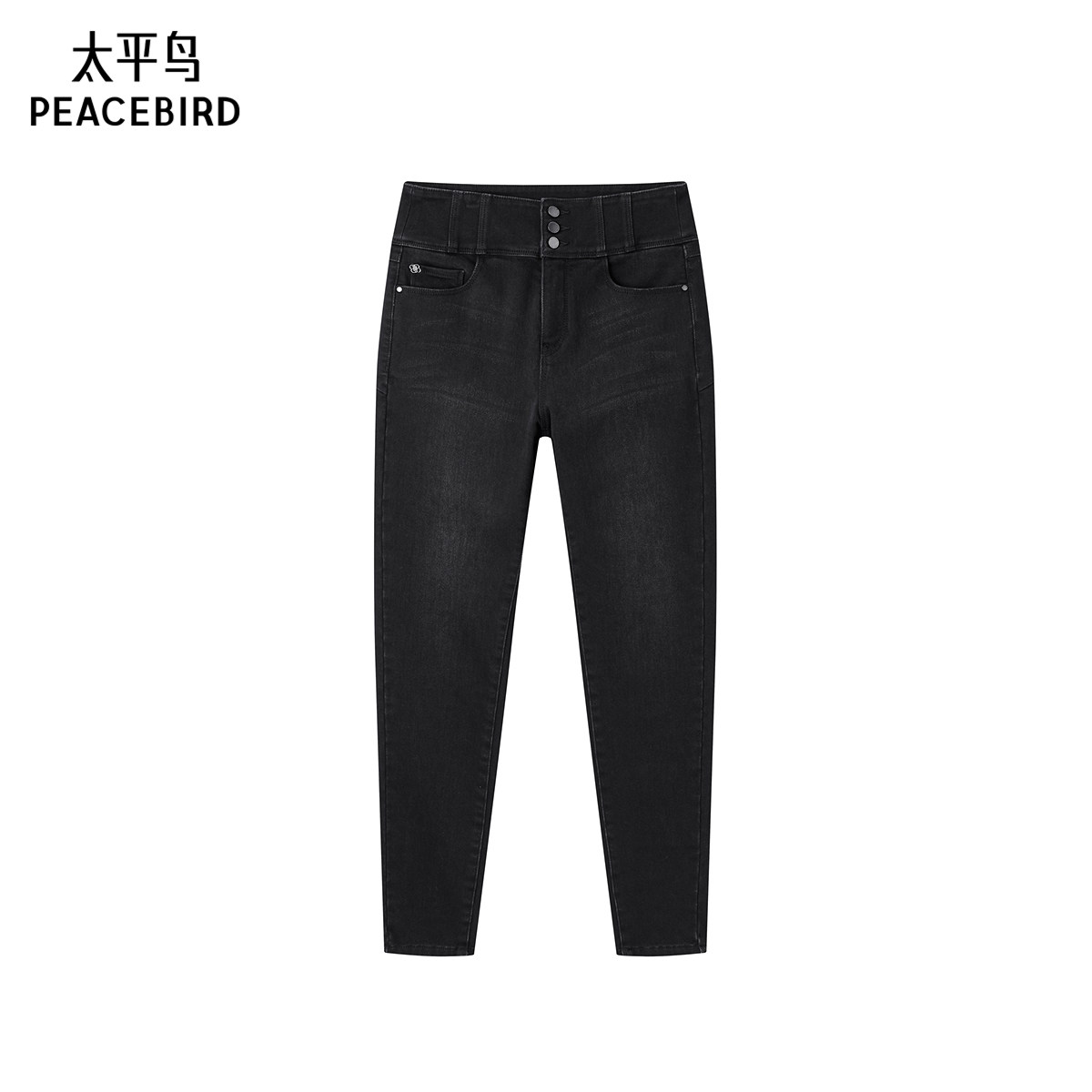 太平鸟女装2025春季款暖感高腰小脚牛仔裤紧身牛仔裤A1HAD4497