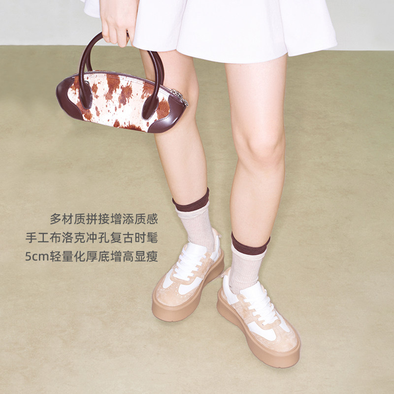Chio2nd南风 4cm增高磨砂牛皮德训鞋子女款秋冬复古休闲鞋运动鞋