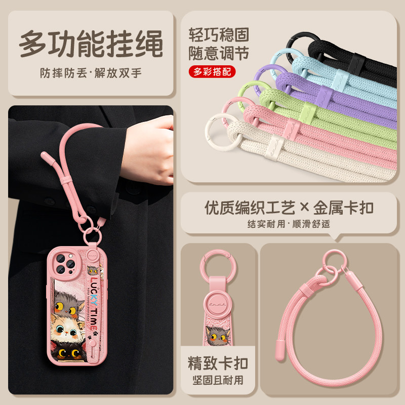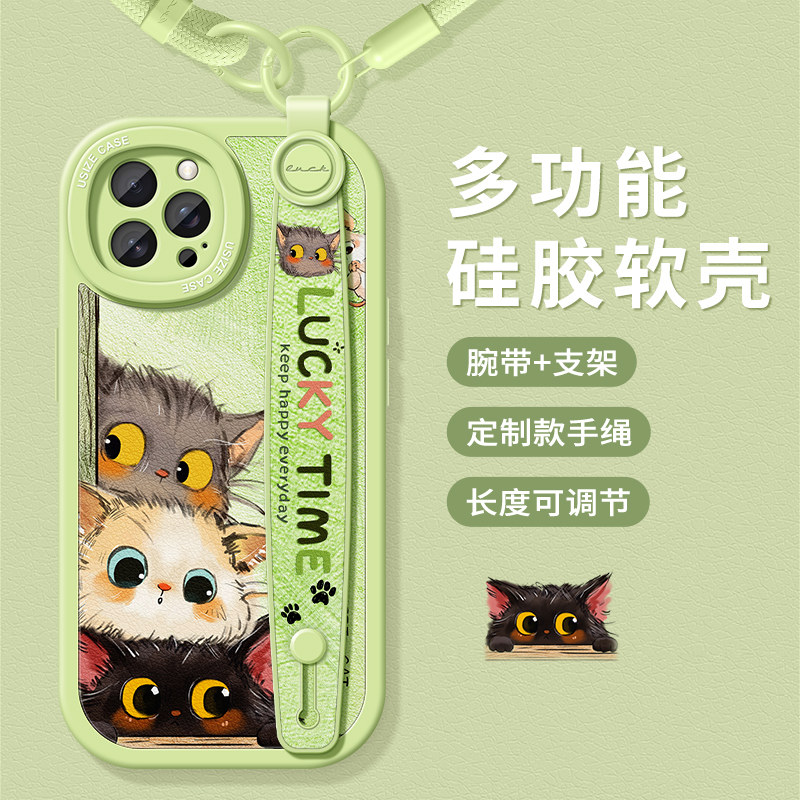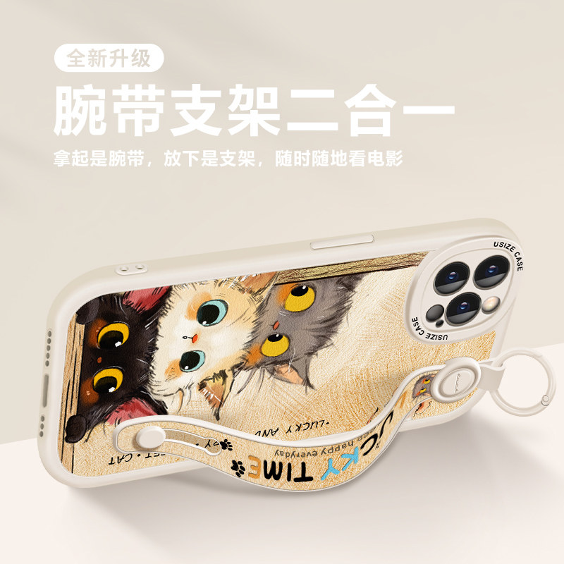三只小猫适用苹果16Promax手机壳14pro新款女iPhone13全包8p防摔iPhone15腕带手绳7plus支架6s手链xr手腕带12