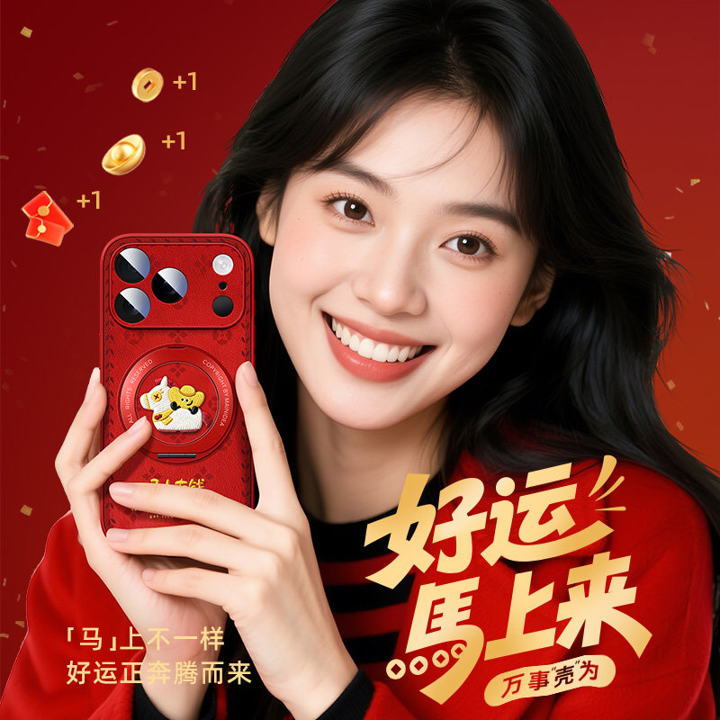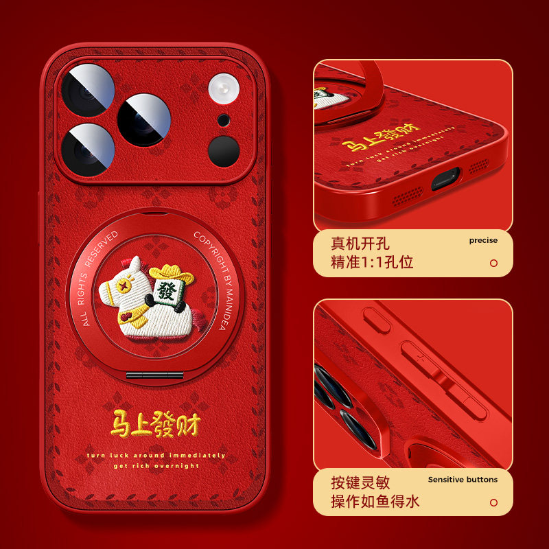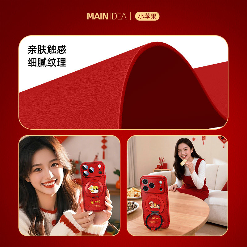 苹果17promax手机壳马年iPhone16带支架ip15pro新款i14磁吸13全包12mini11适用8plus7/6s外壳x/xr套se3/2air