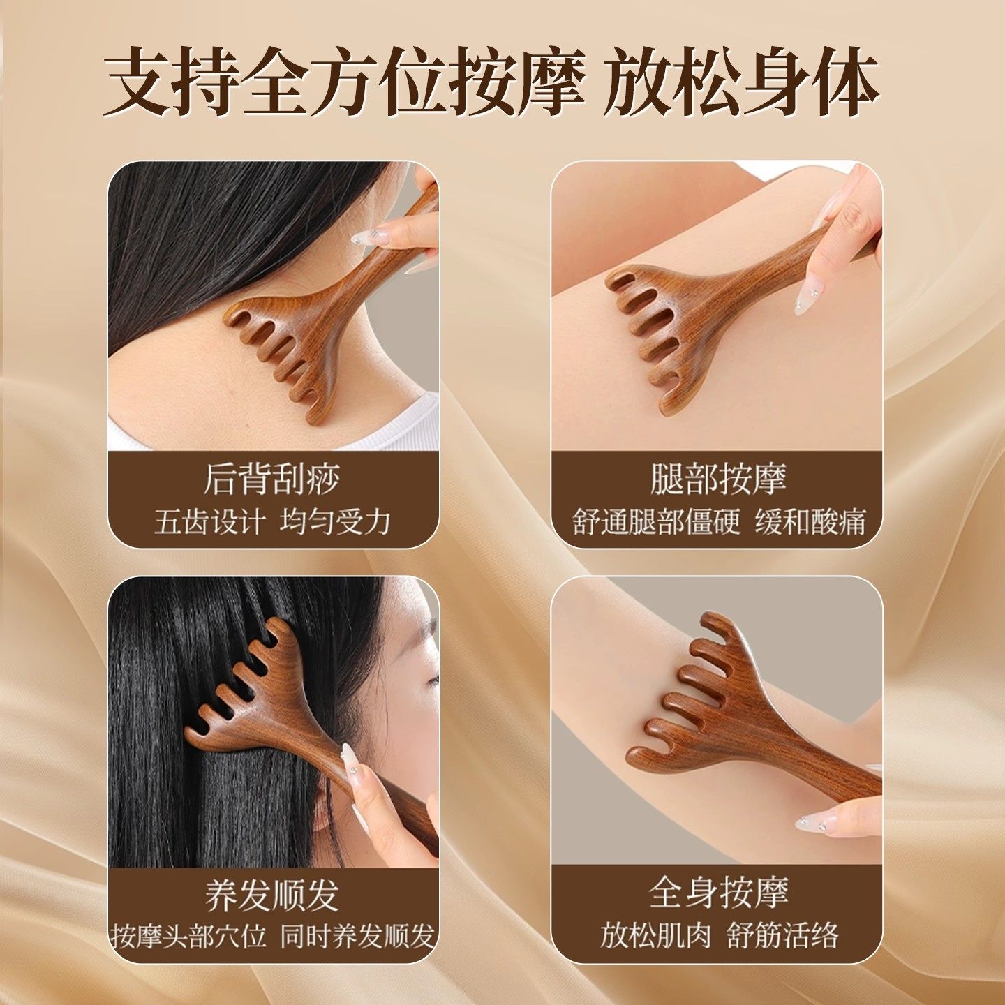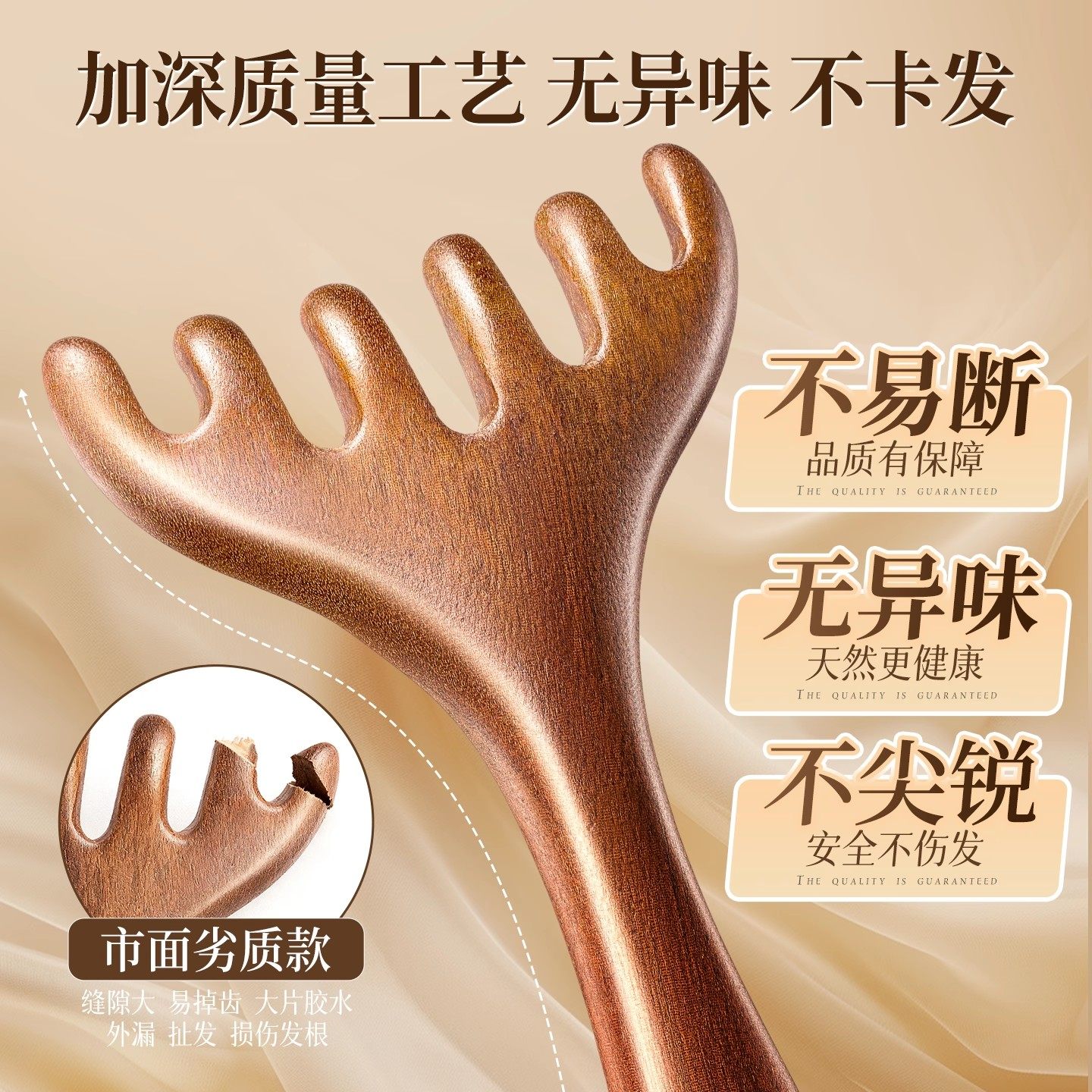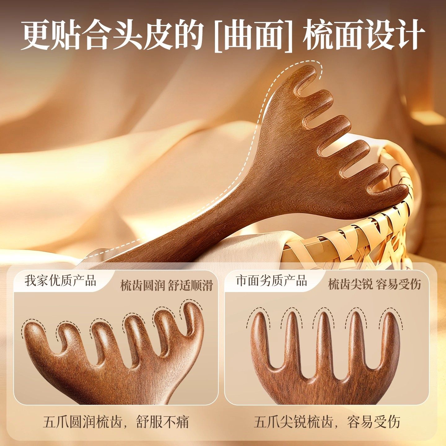 五爪头部按摩经络梳子养生头疗工具天然檀木头皮淋巴刮痧疏通神器
