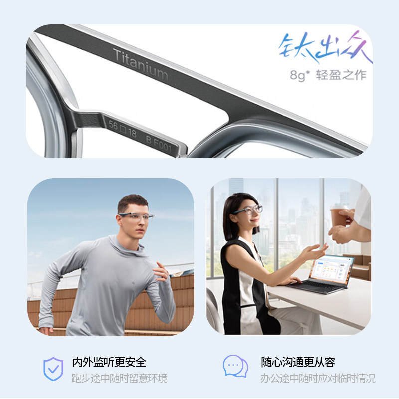 界环AI音频智能眼镜无线蓝牙耳机摸鱼开会陈震同款纯钛实时翻译