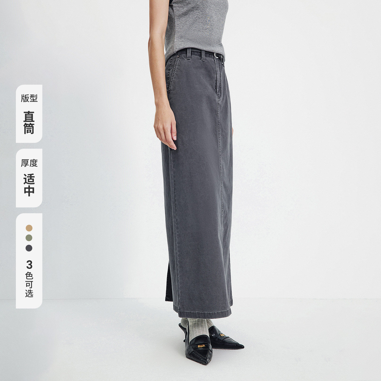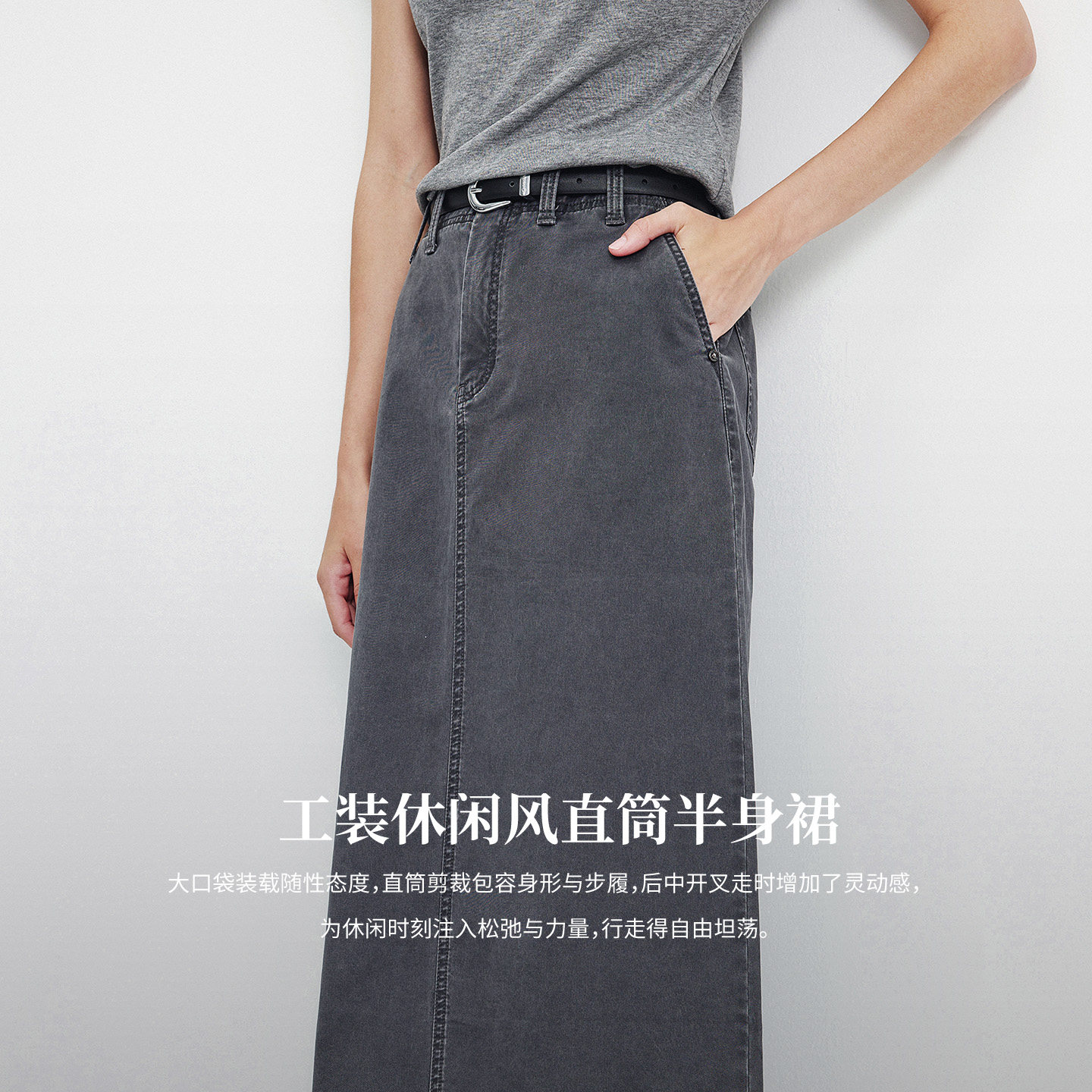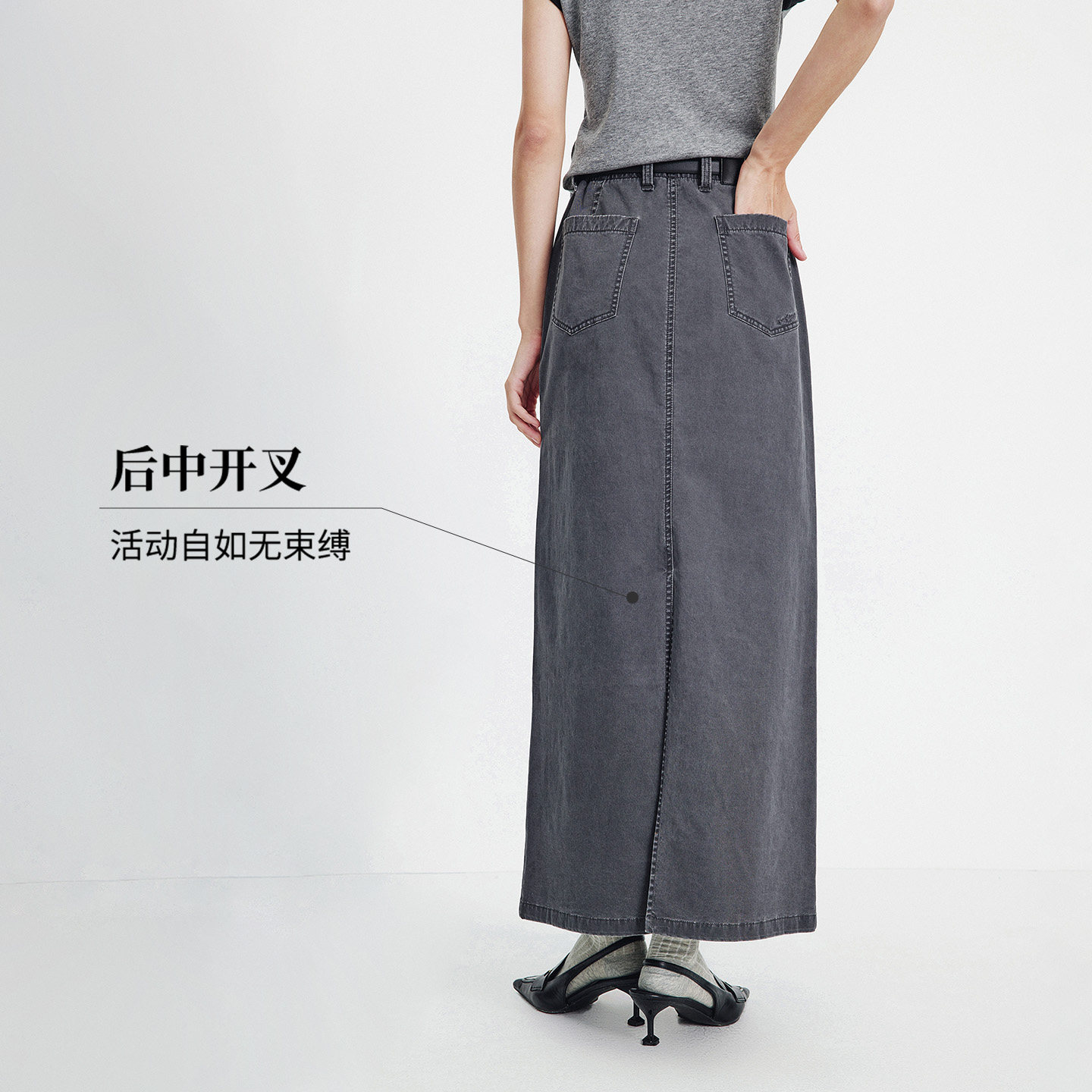 Navigare意大利小帆船灰色工装半身裙女2026春夏新款牛仔直筒半裙
