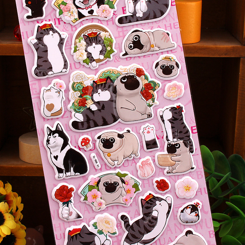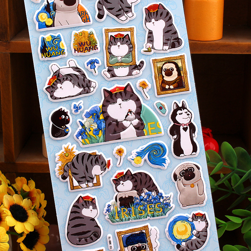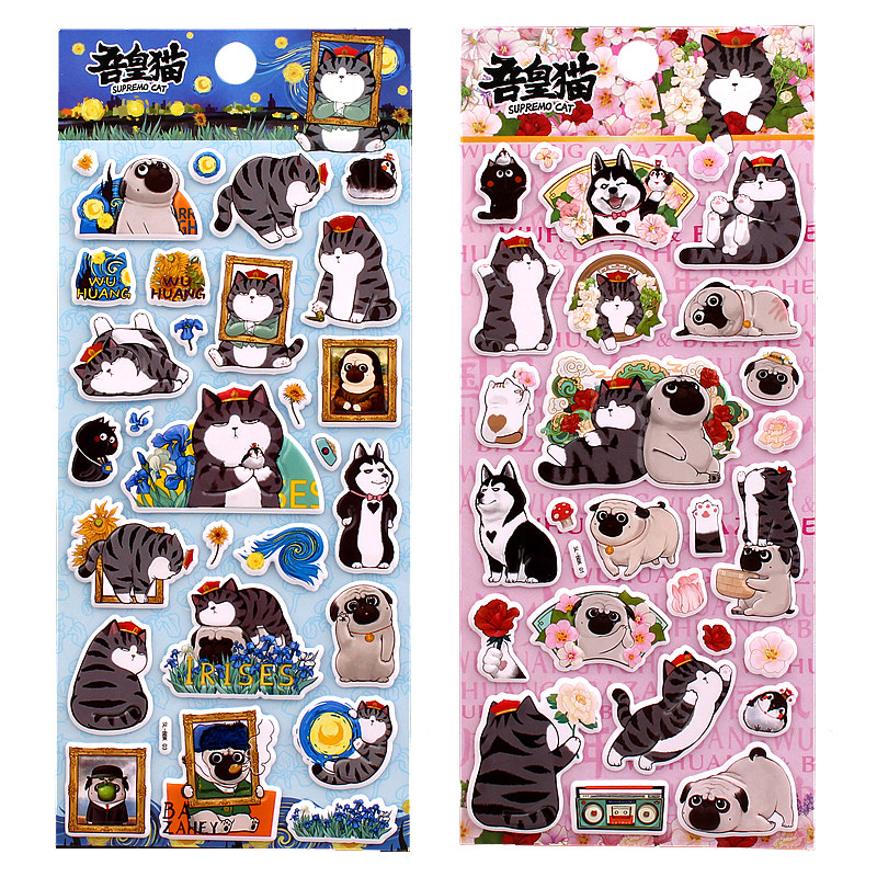 可爱猫咪吾皇猫巴扎黑立体卡通泡泡贴画sticker儿童趣味小粘贴纸