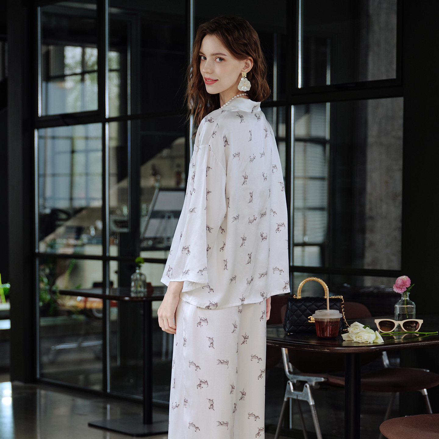 100%桑蚕丝 减龄狗狗印花