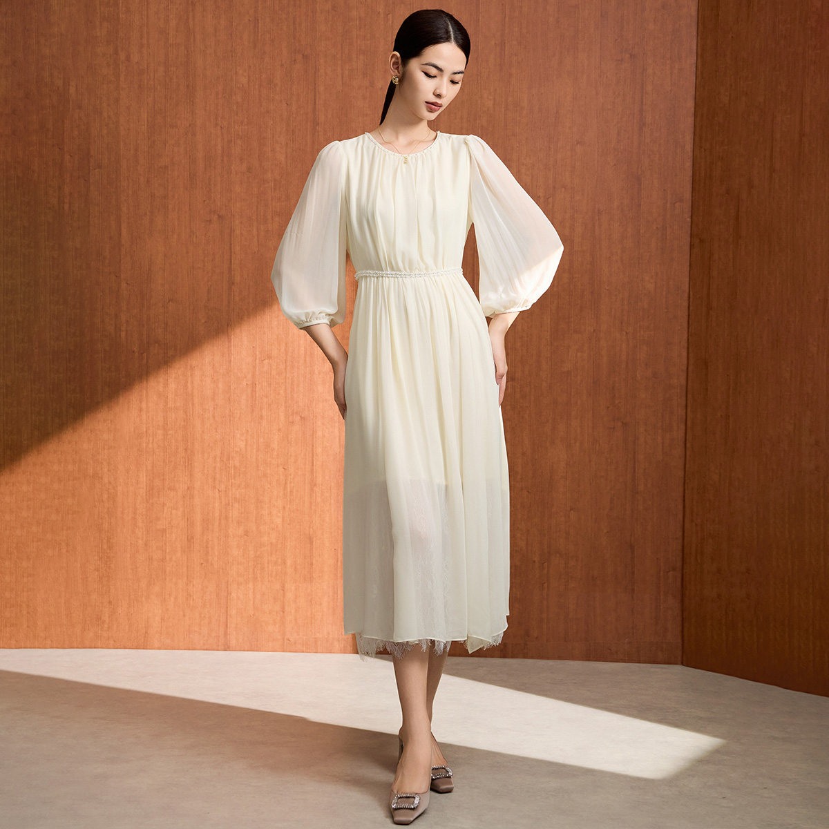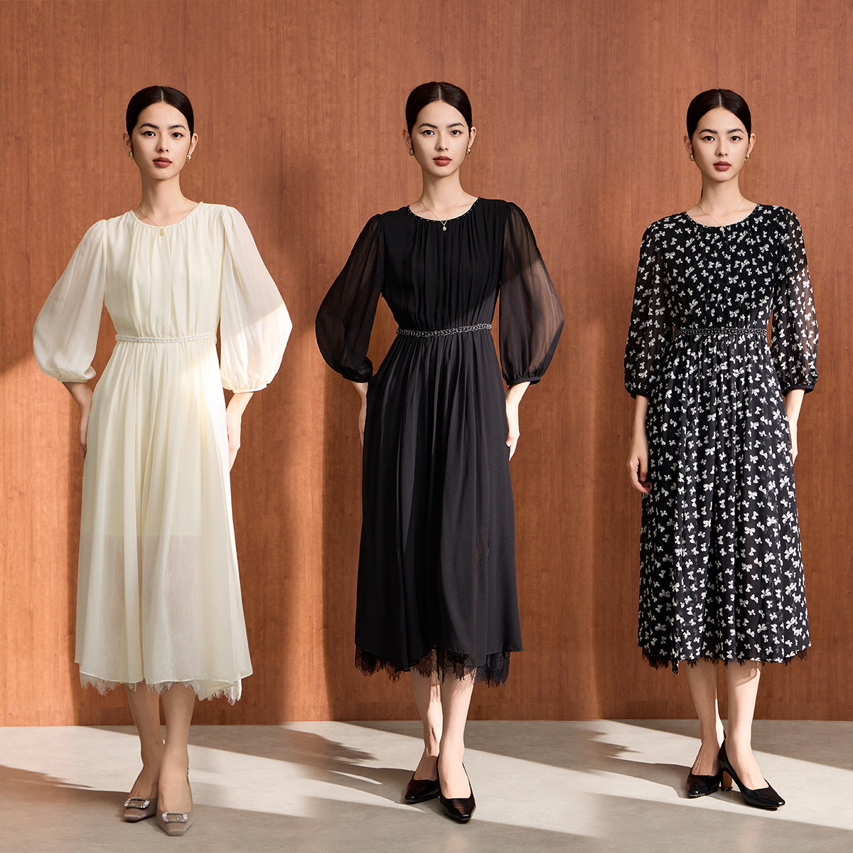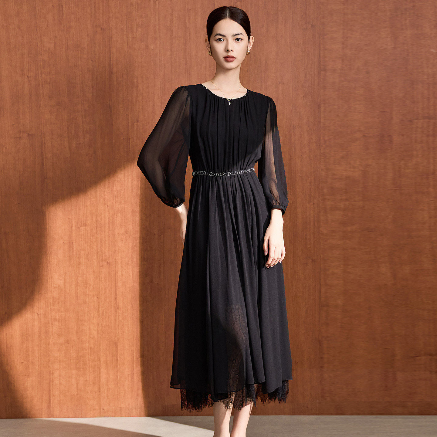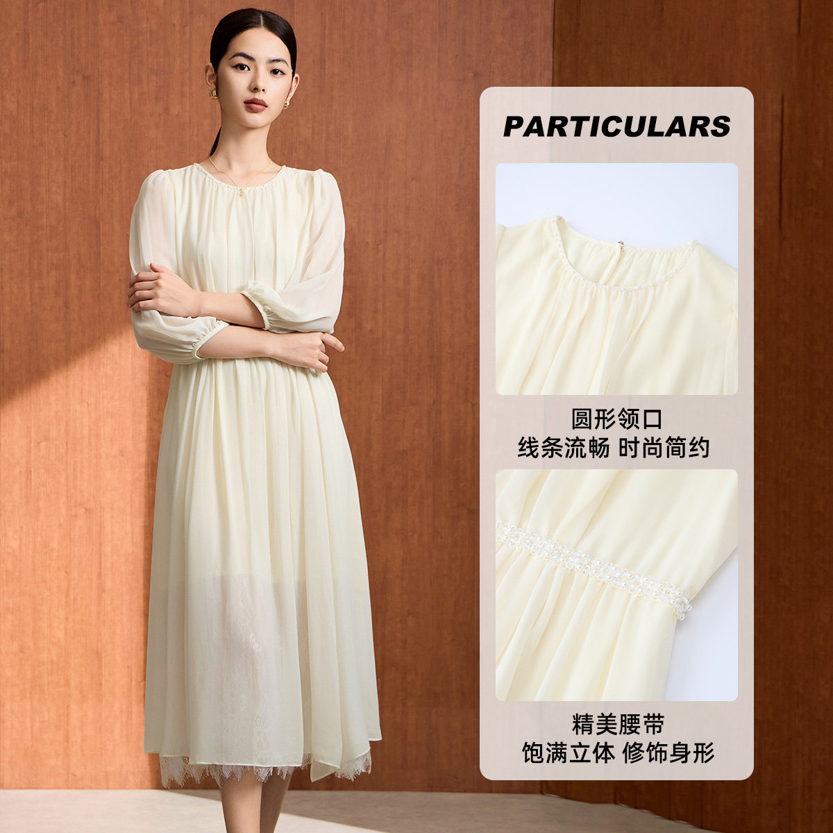 马天奴女春秋新款蕾丝雪纺连衣裙轻奢高级感收腰气质长裙子巨好看