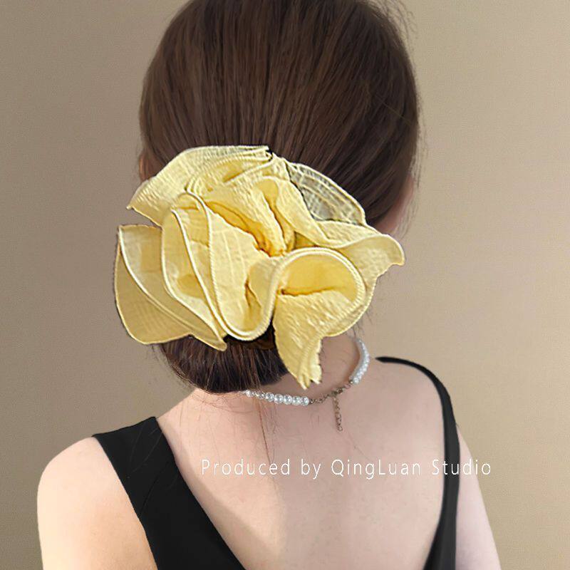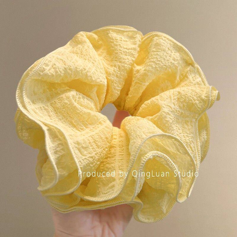 2026明媚柠檬黄超仙泡泡纱大肠发圈女春夏丸子头绳精致旅行公主风
