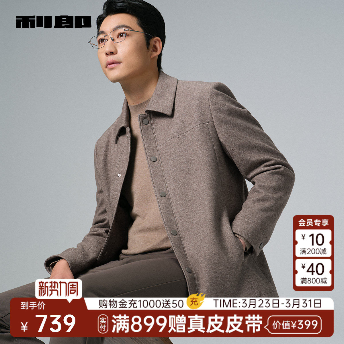 【翻领】利郎官方中长款毛呢大衣男士冬季新款羊毛外套男装
