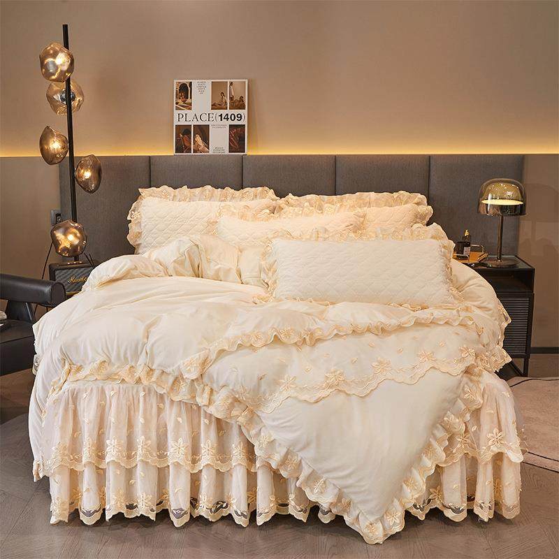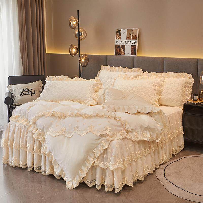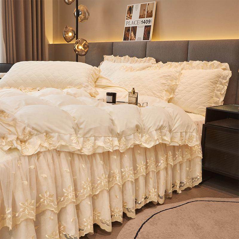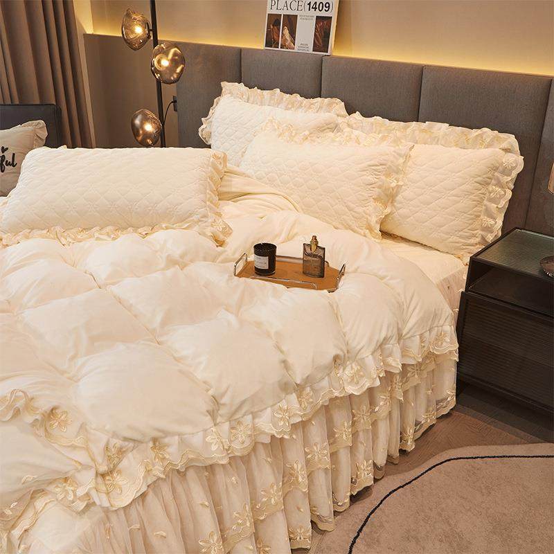 #新款纯色加厚宝宝绒保暖冬季蕾丝刺绣床裙家用1.5m1.8m床四件套