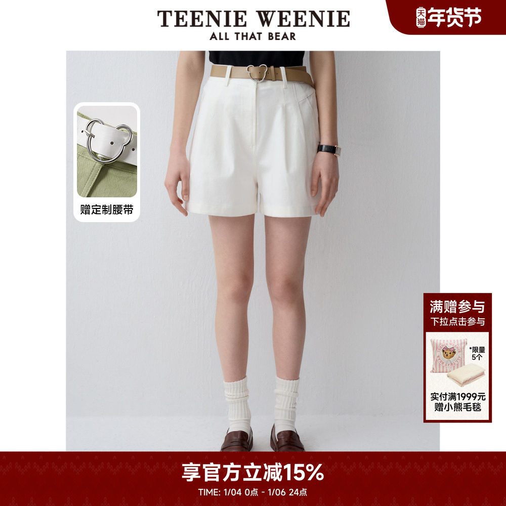TeenieWeenie小熊奥莱女装简约学院风高腰休闲短裤薄款时尚阔腿裤