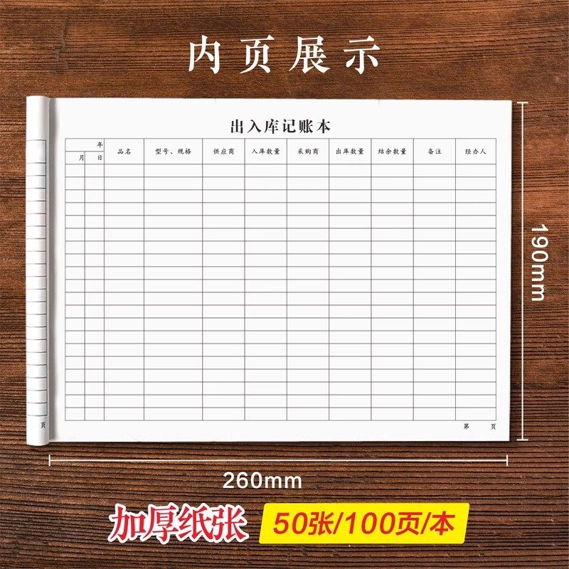 仓库出入库记录本商品原材料进出货库存记账本货物登记本库房盘点分类进销存服装店台账进货出库登记表