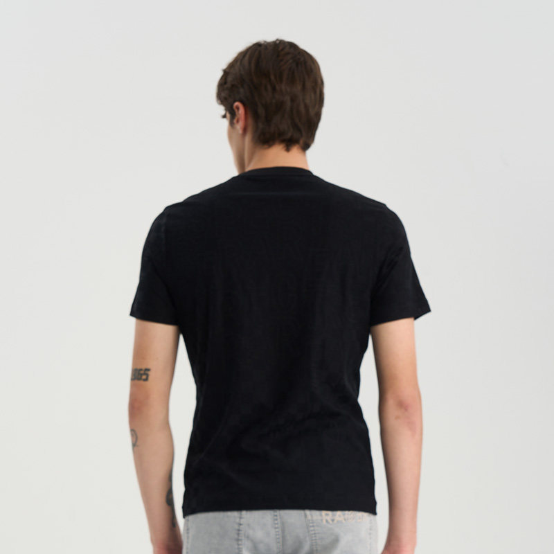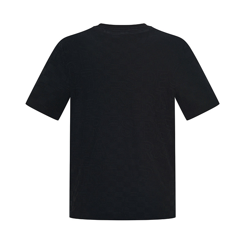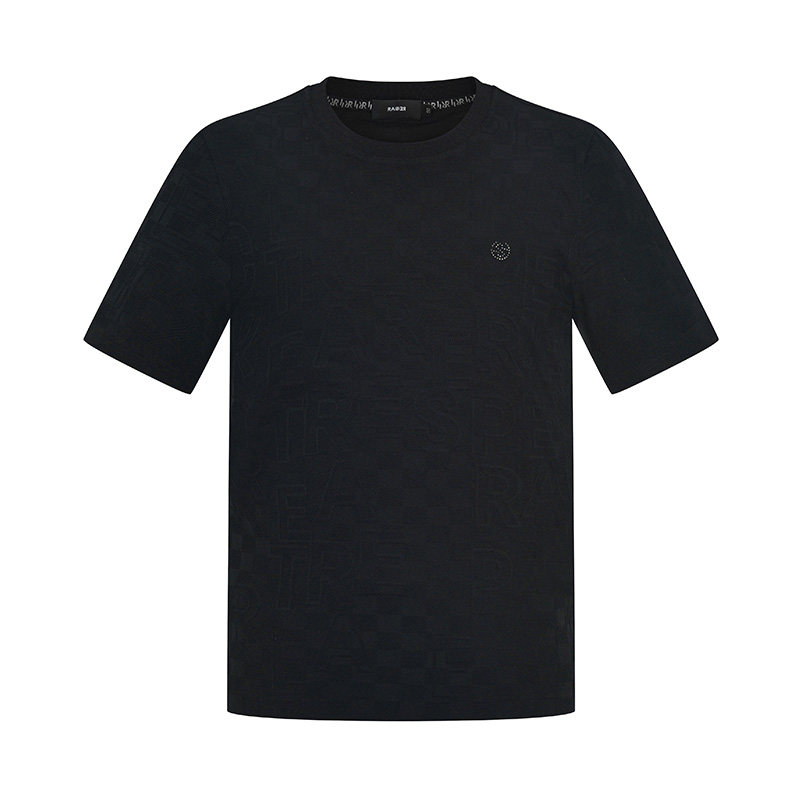 RARE威雅男装夏季新款黑色短袖男士字母格纹提花烫钻圆领T恤