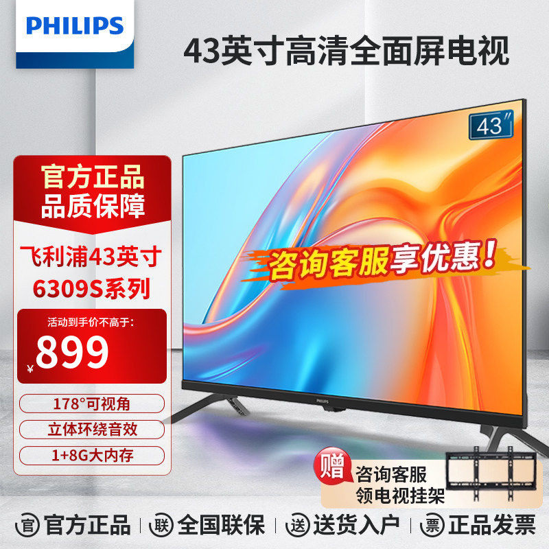 Philips/飞利浦43英寸LED高清全面屏网络液晶电视机43PFF6309S/T3