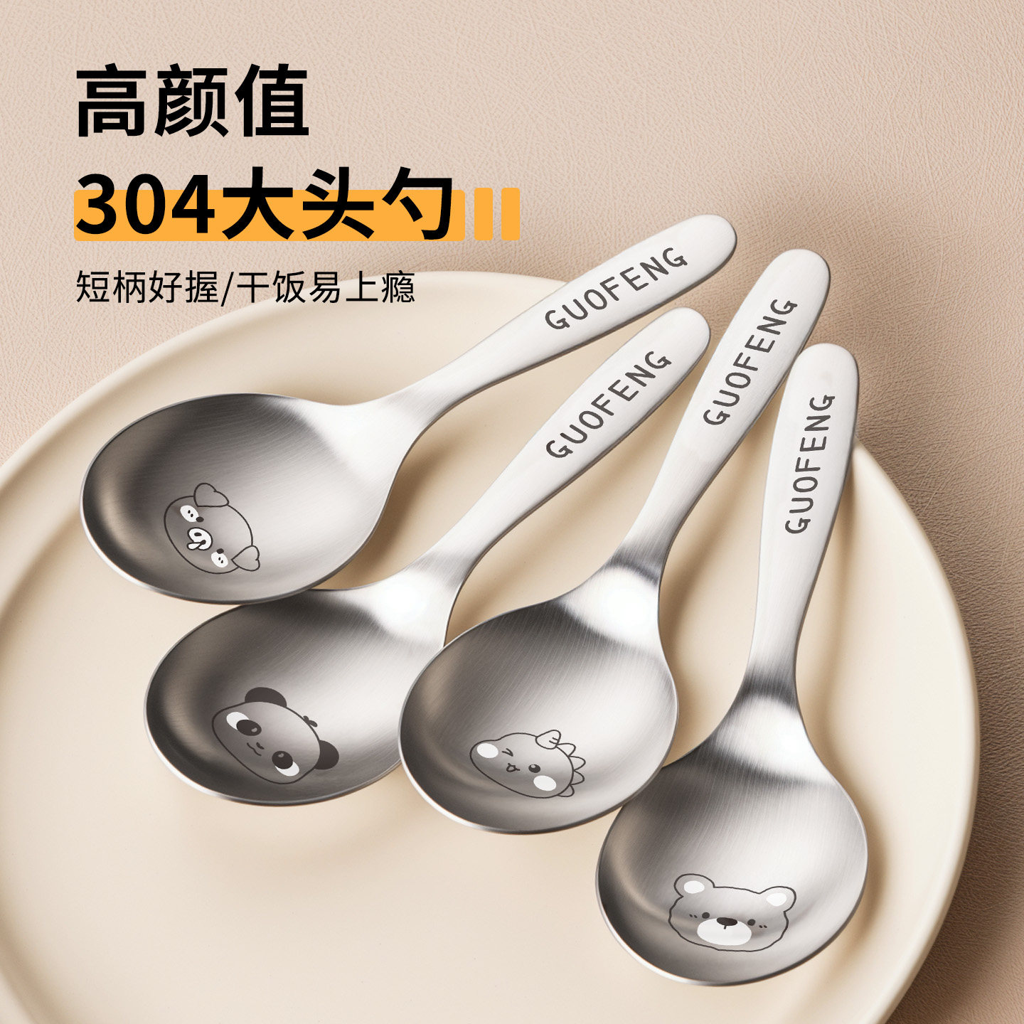 304不锈钢勺子儿童汤勺个人专用吃饭汤匙调羹食品级短柄大头勺