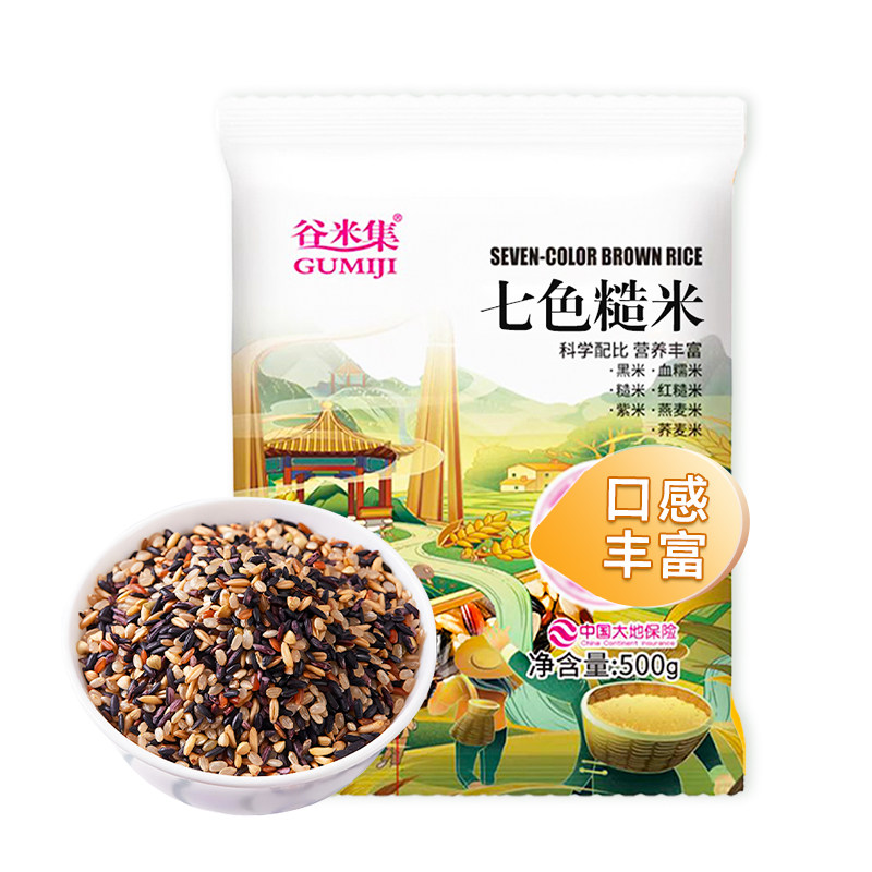 谷米集东北七色糙米500g*1袋低脂粗粮大米