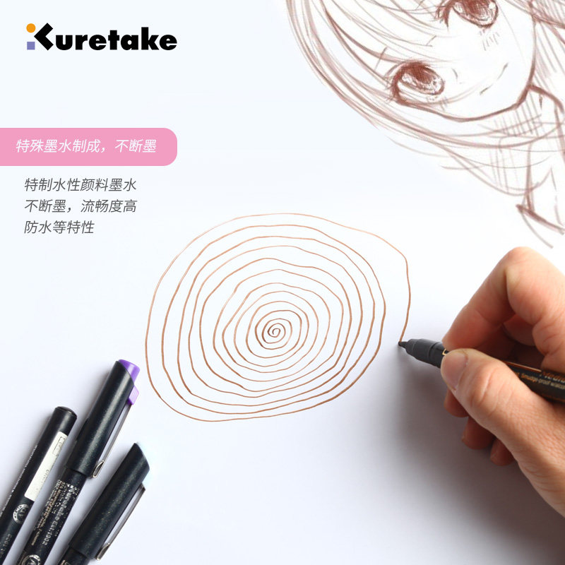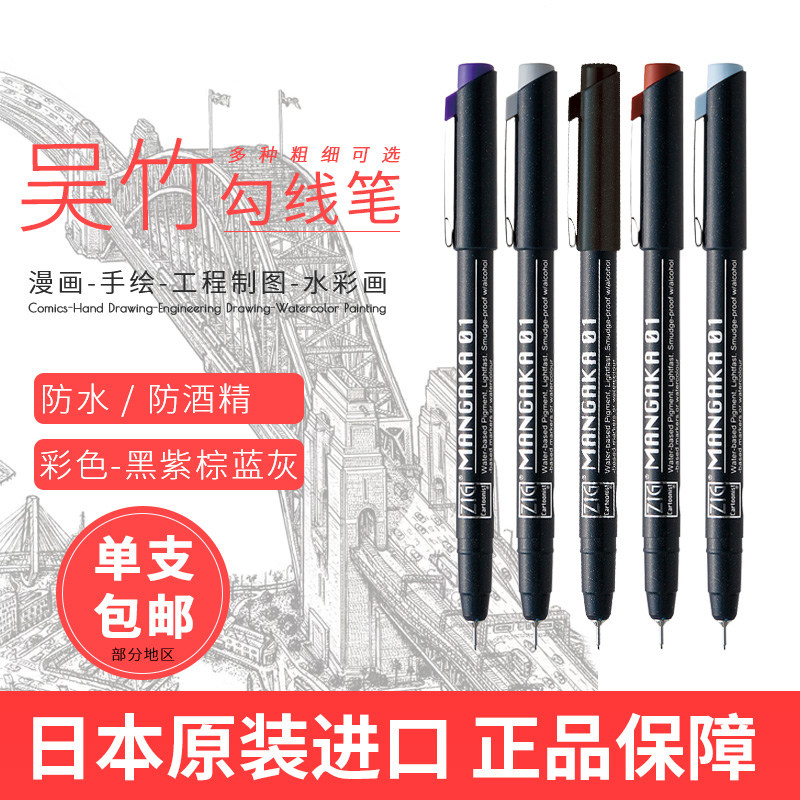 日本吴竹针管笔美术专用棕色防水勾线笔高达描边笔彩色绘图笔套装