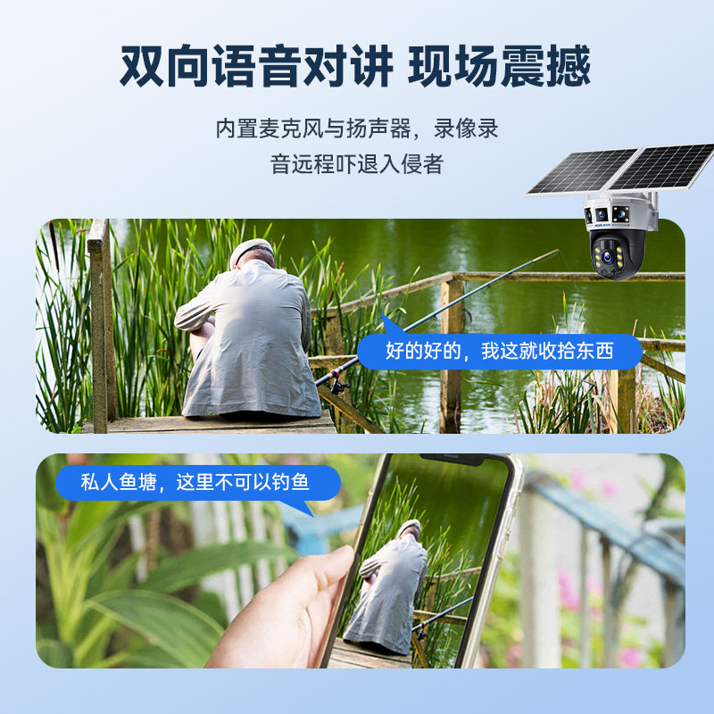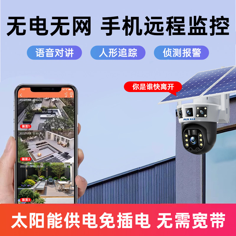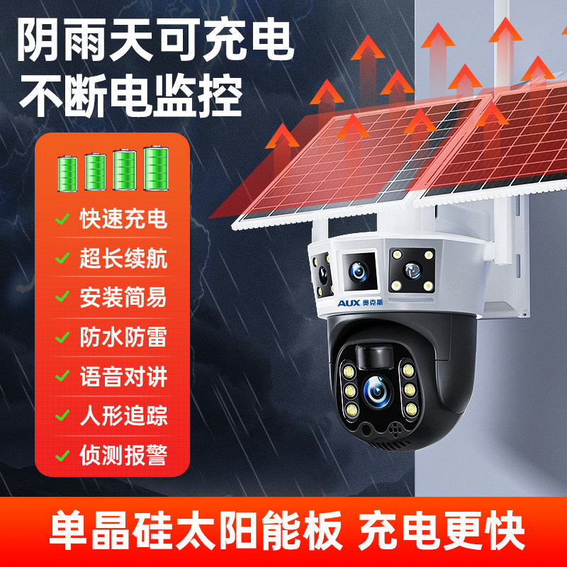 奥克斯太阳能摄像头监控器360度无死角室外无电无网高清夜视防水