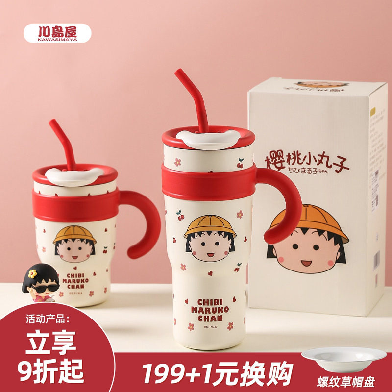 川岛屋樱桃小丸子保温杯女生大容量吸管杯子成人巨无霸水杯冰霸杯