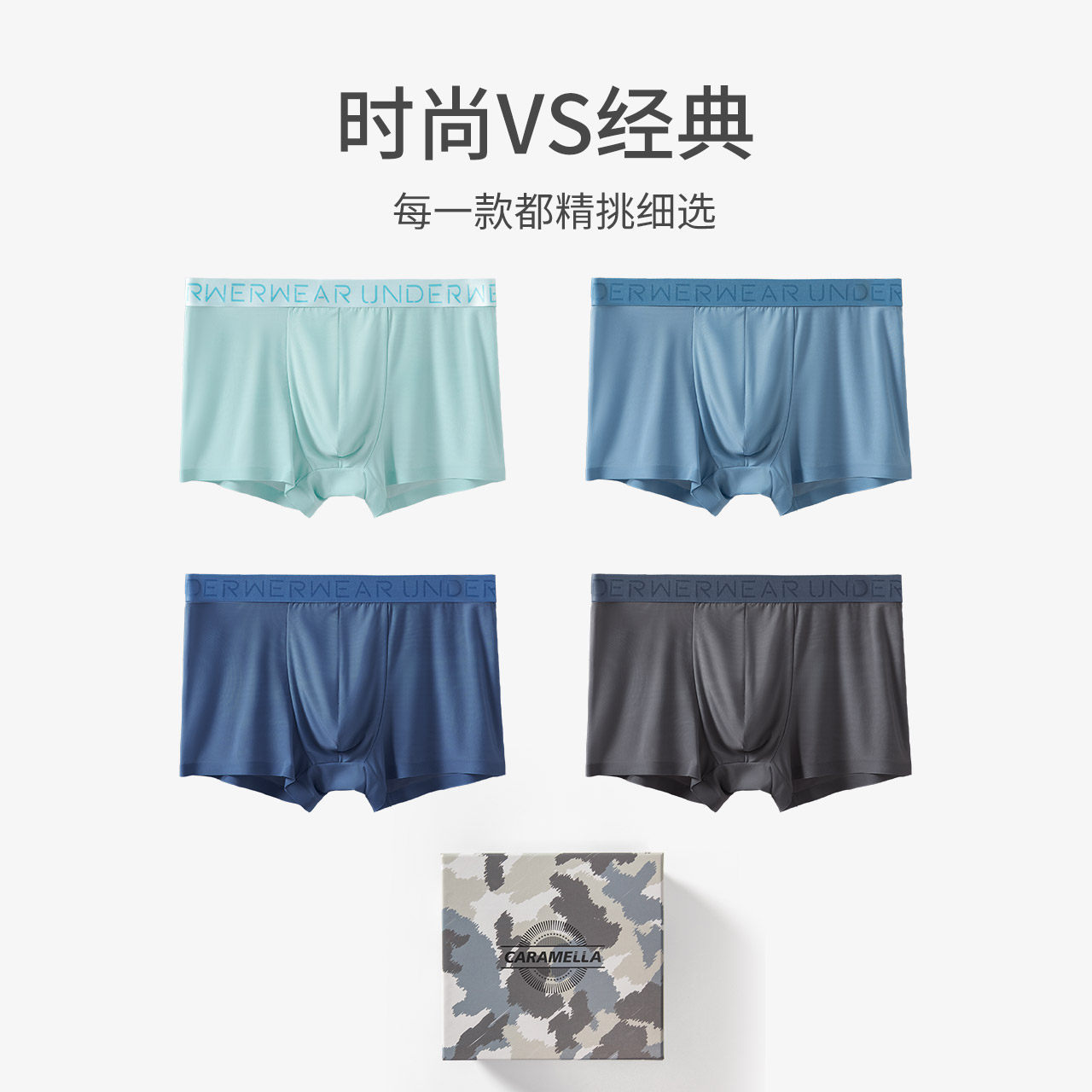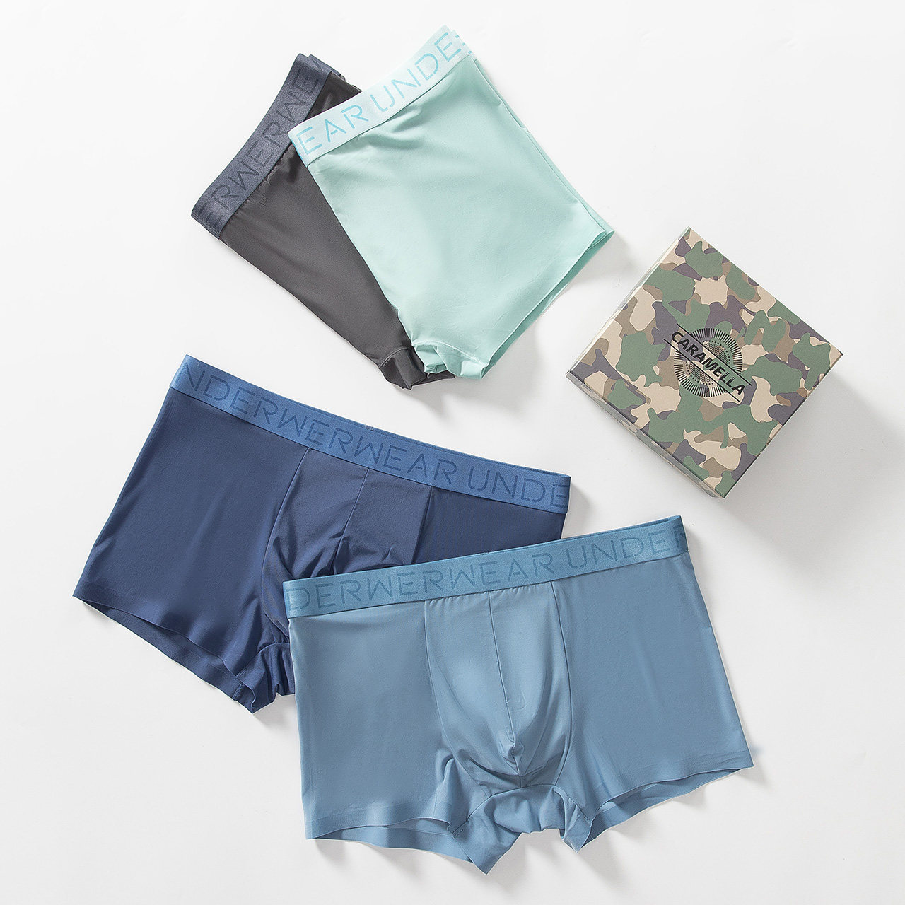 caramella/卡拉美拉内裤男亲肤面膜凉感无痕冰丝短裤纯色平角裤头