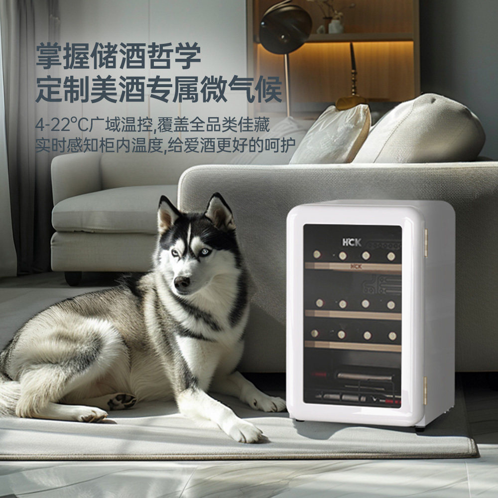 【自营】HCK复古红酒柜恒温恒湿家用嵌入小型薄冷藏冰箱SC-70CTC