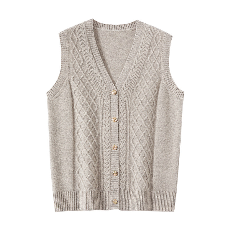 恒源祥100%羊毛马甲春秋无袖毛衣女士新款提花套头背心打底针织衫