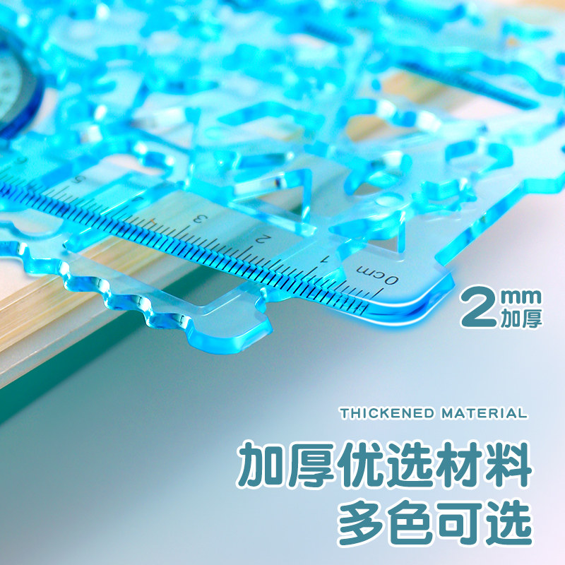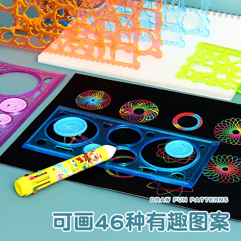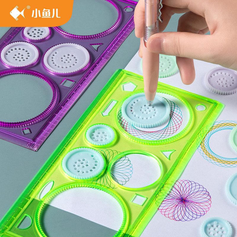 小鱼儿百变万花尺魔幻套装小学生尺子多功能直尺手抄报模板尺繁花学生专用文具绘画画量角器儿童镂空曲线绘图