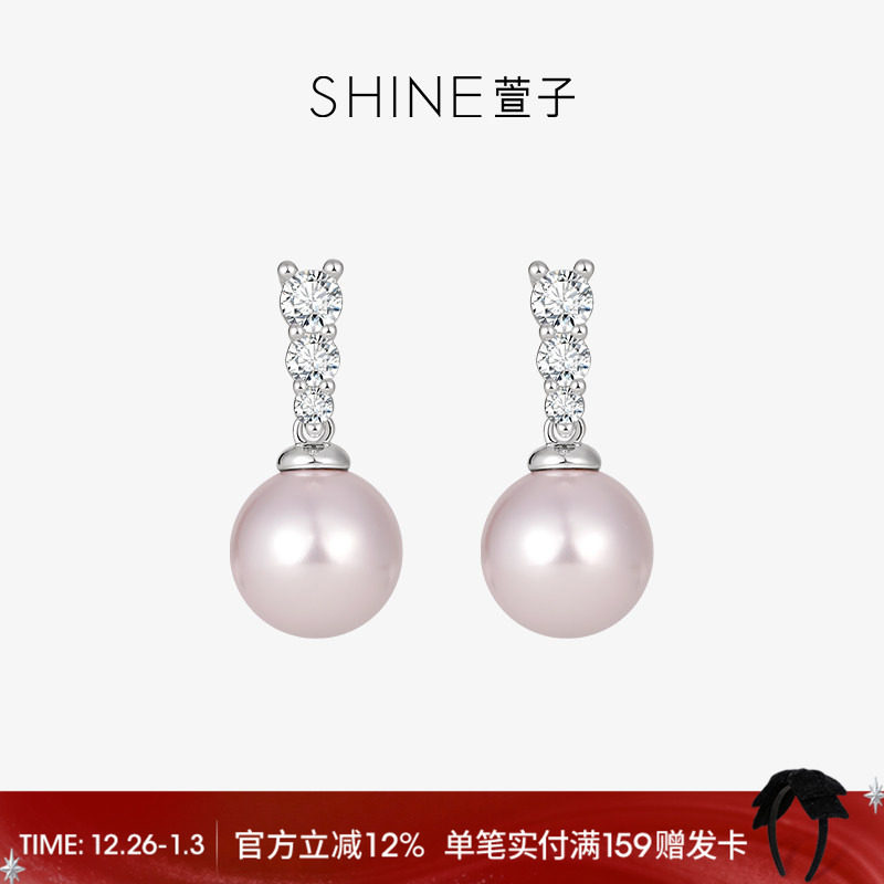 SHINE萱子饰品蔓塔玫瑰系列珍珠耳钉紫色耳环优雅闪耀生日礼物