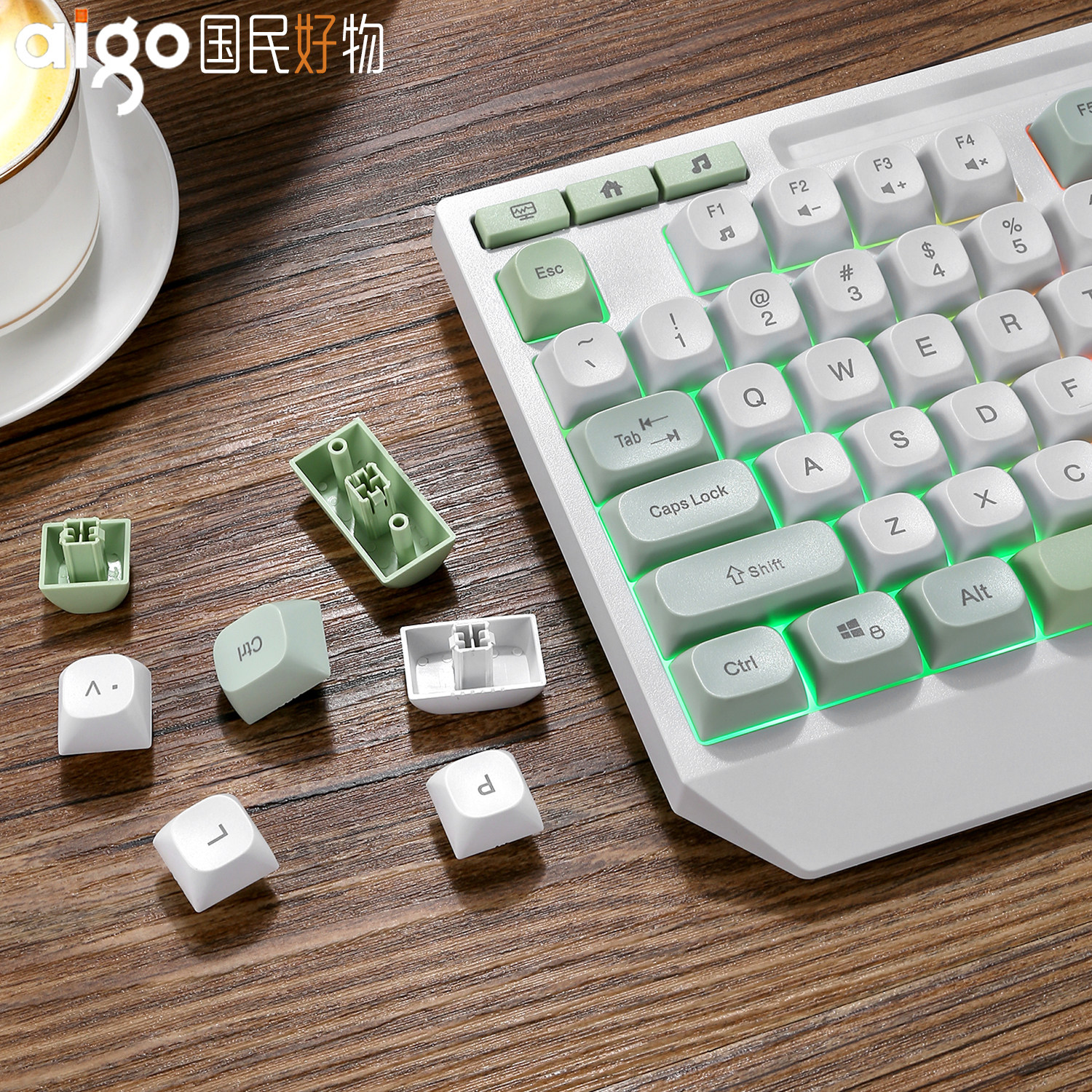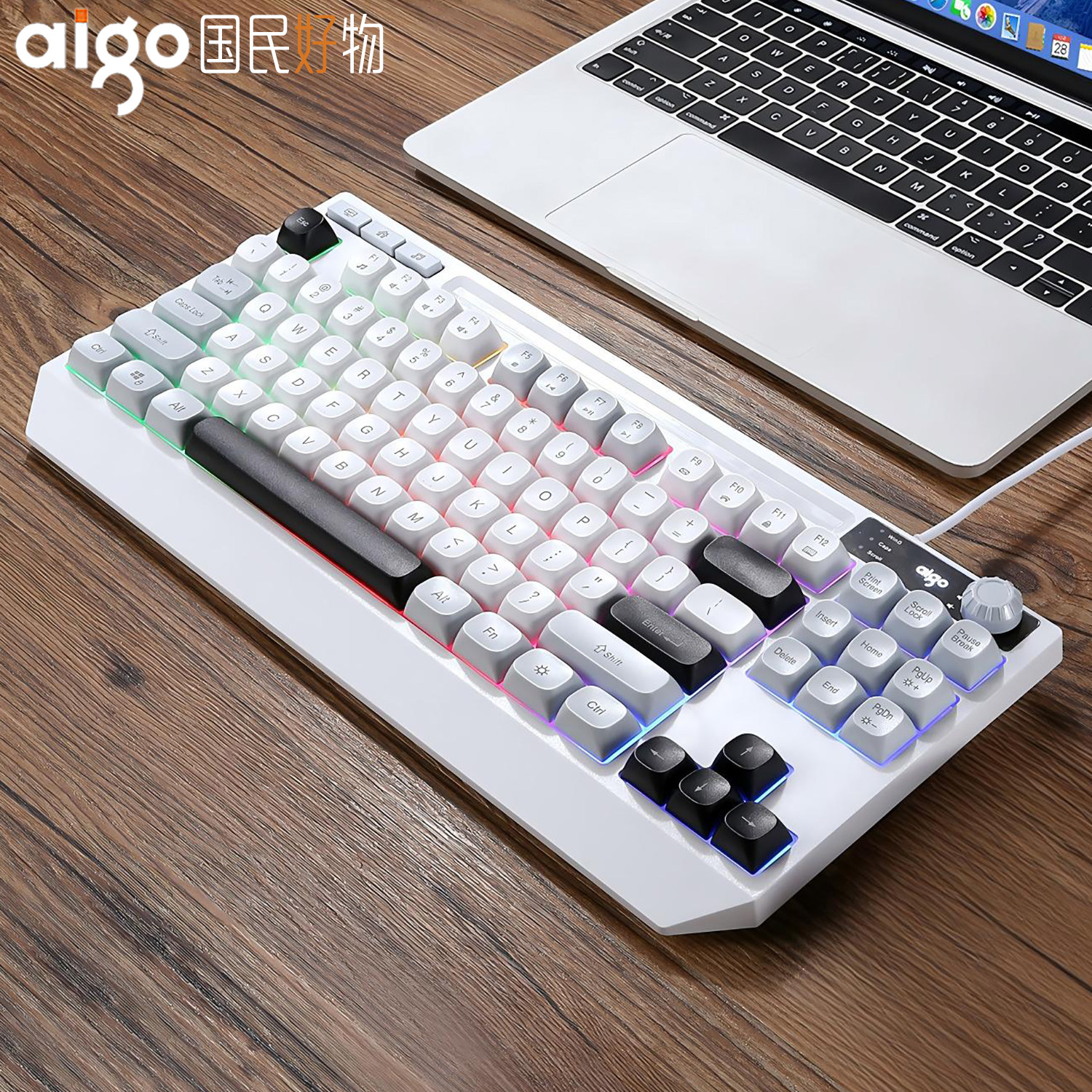 爱国者AIGO游戏键盘87键电竞机械手感电脑笔记本有线键盘鼠标套装