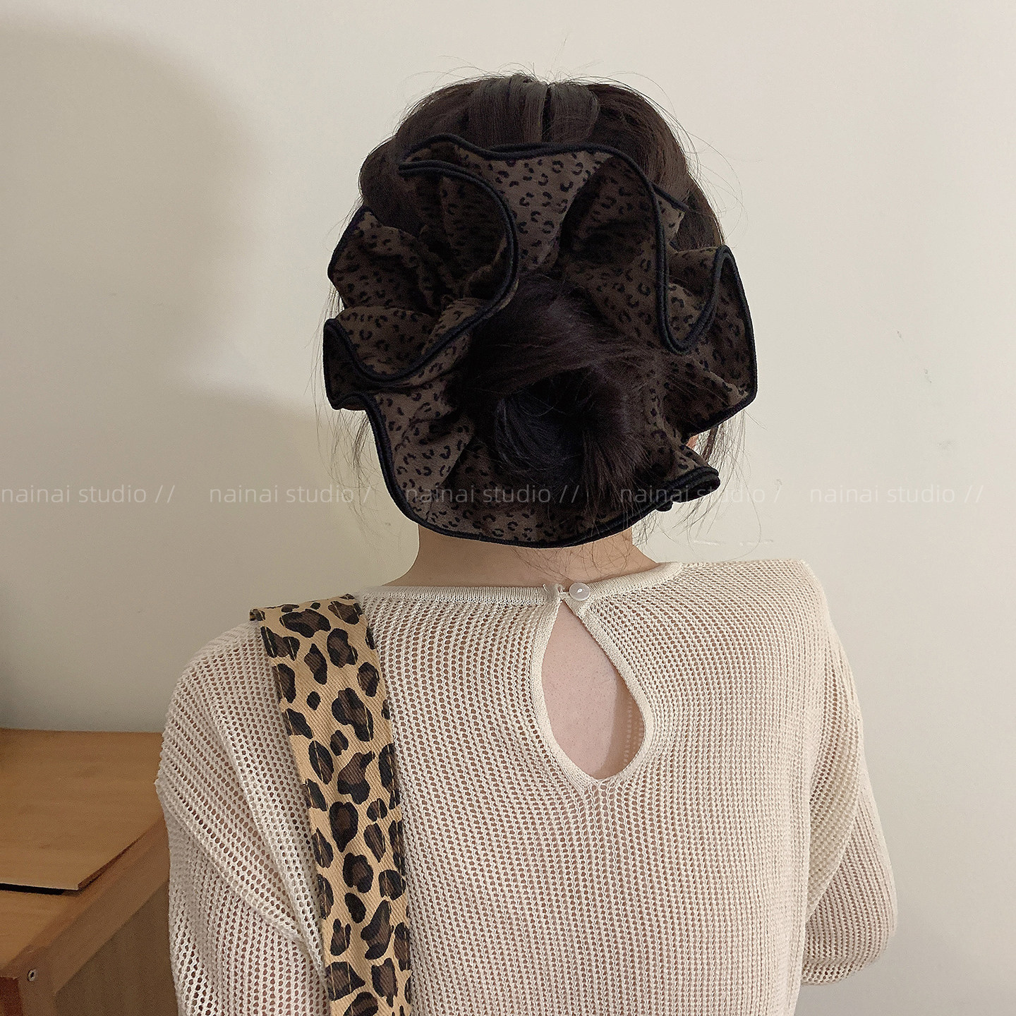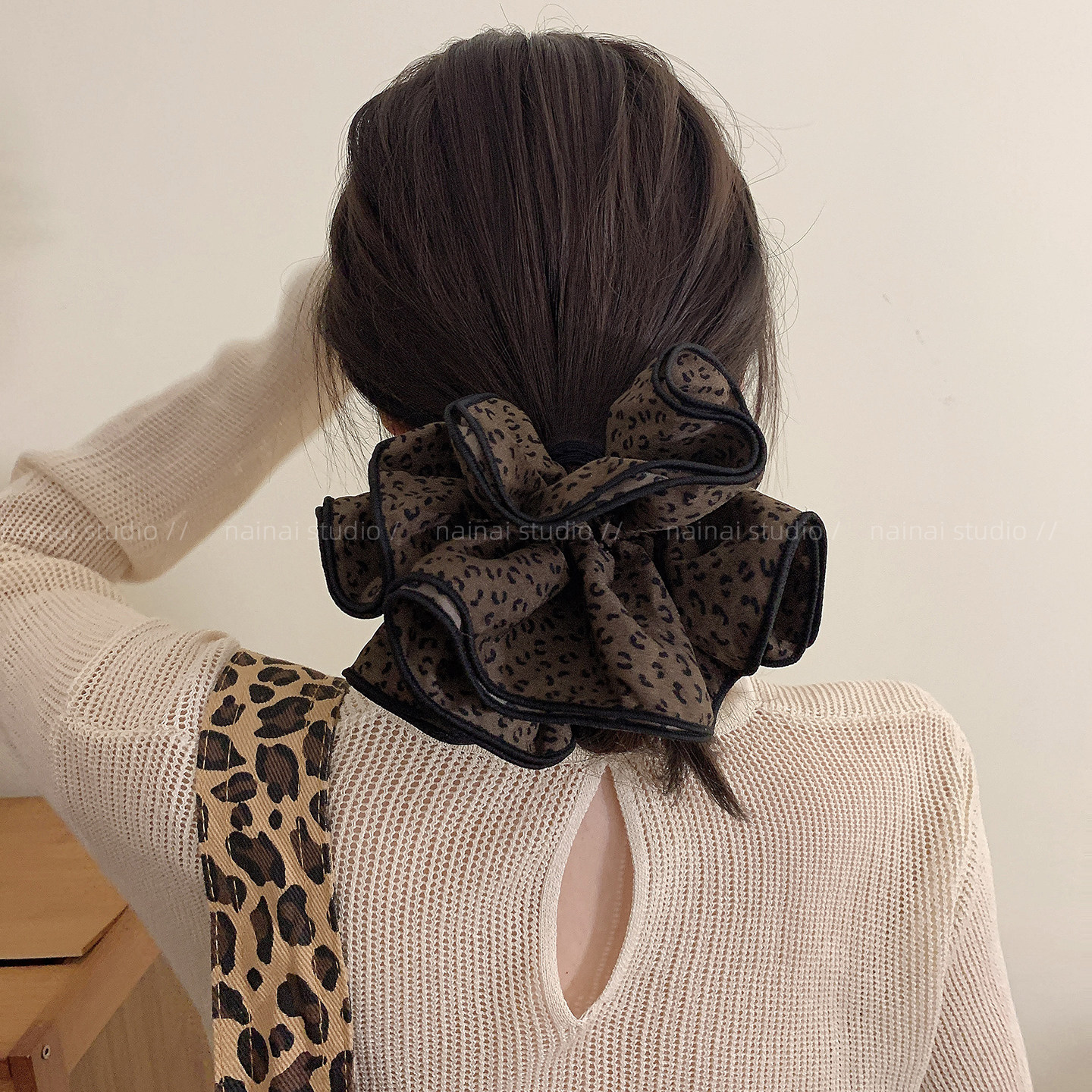 四层超大号~豹纹大肠发圈早秋复古y2k辣妹甜酷低马尾丸子头发绳女