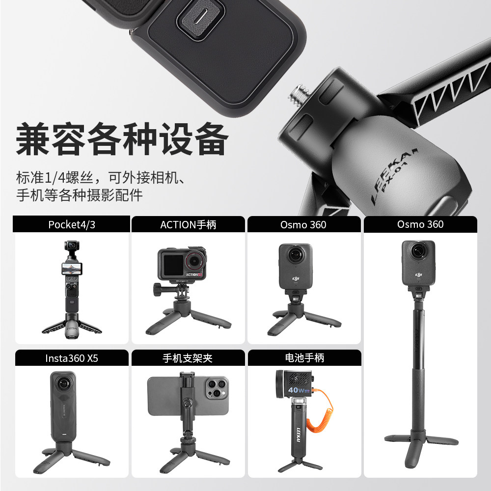 力凯PX01适用大疆pocket4/3三脚架迷你桌面支架action6/5/4运动相机gopro底座配件手持自拍延长杆一键打开